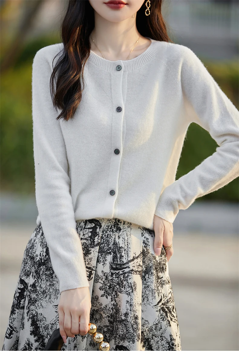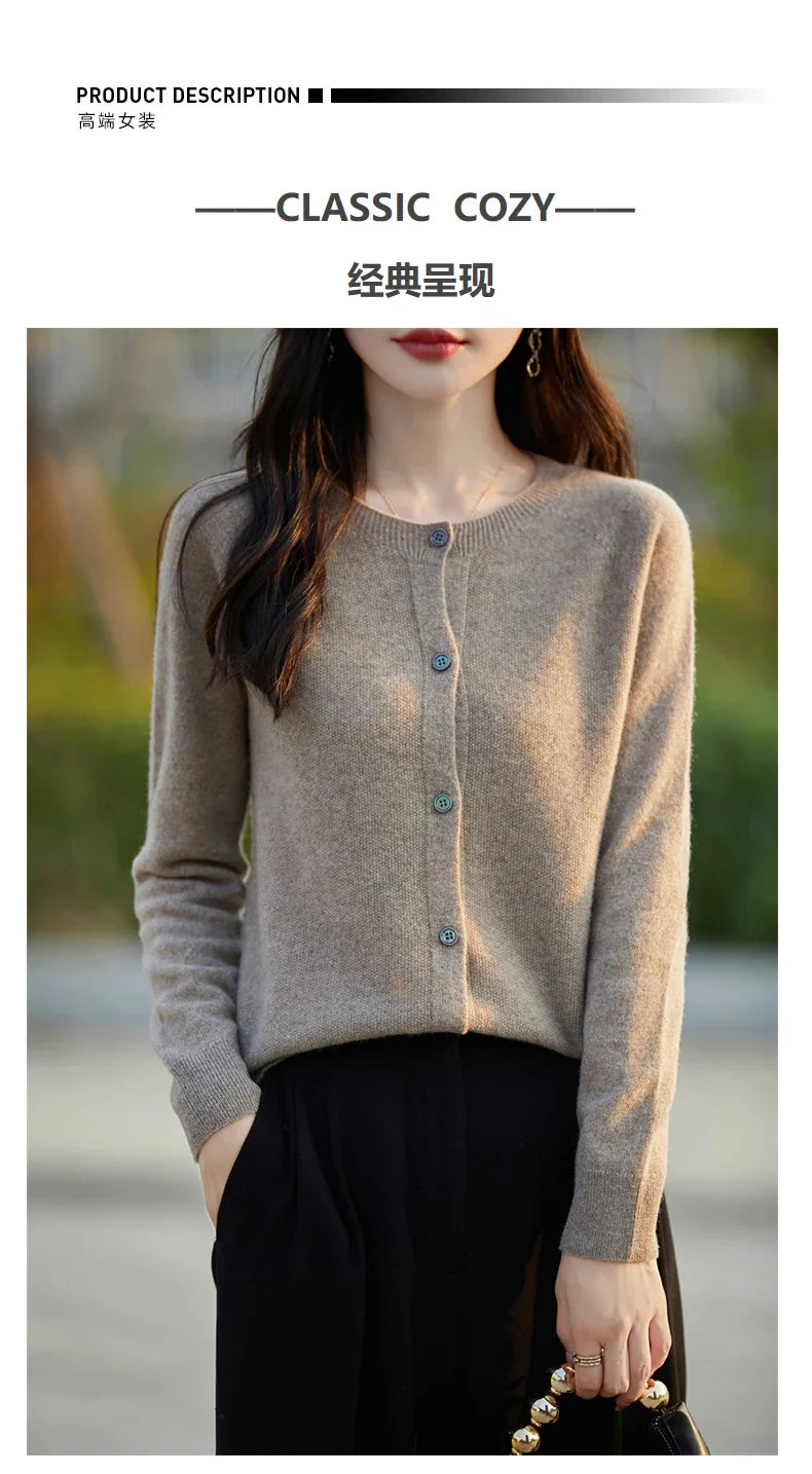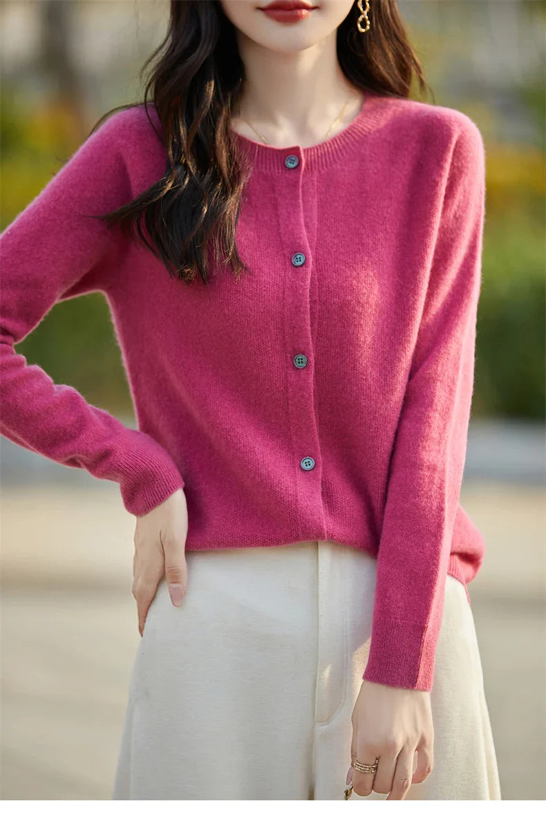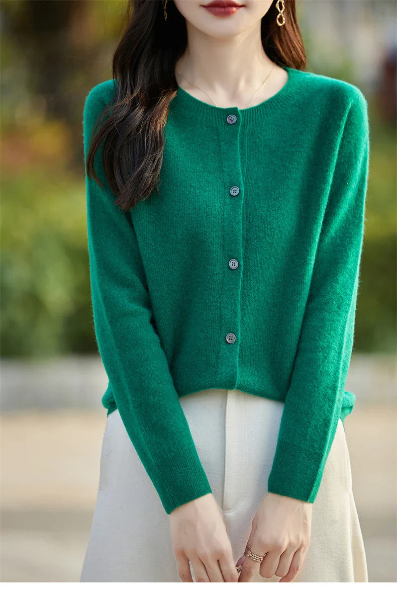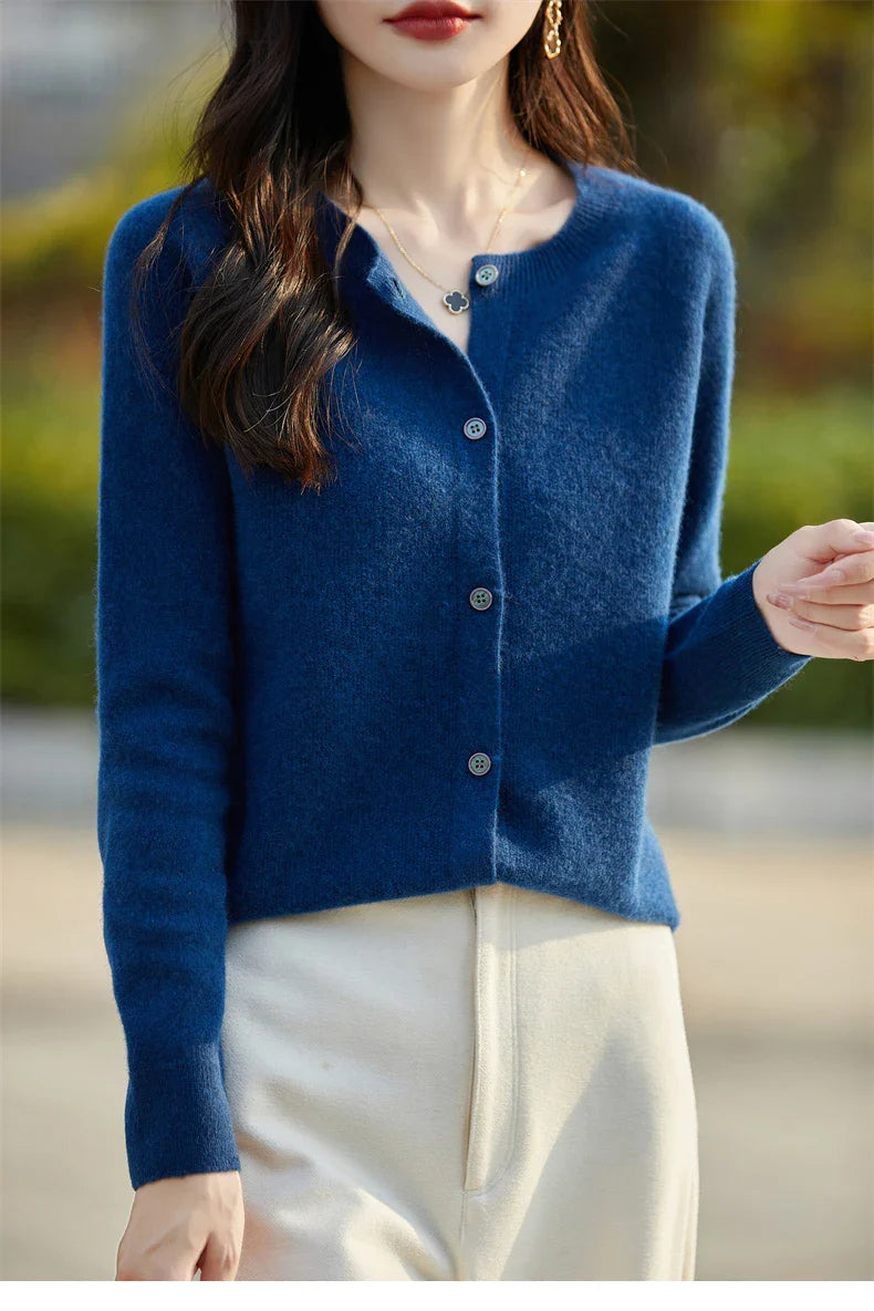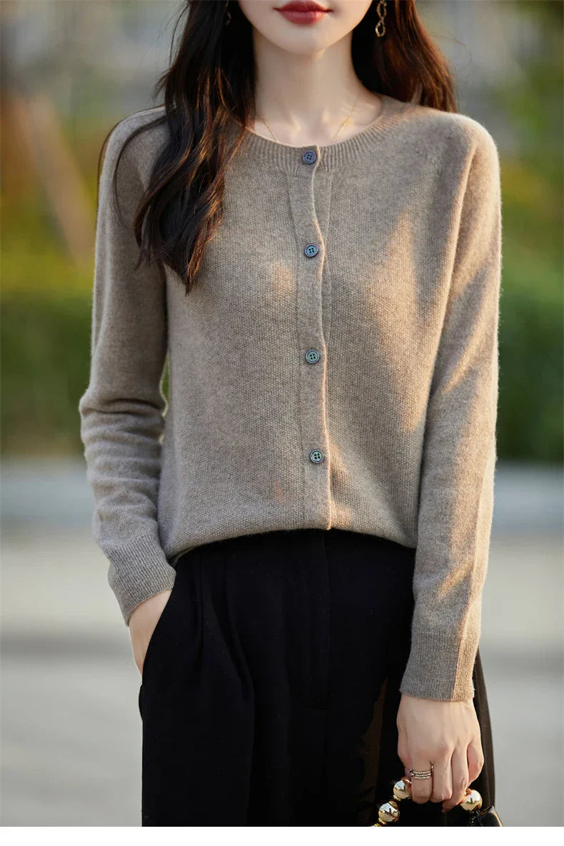 Soft Wool Cashmere Blend Knitted Round Neck Cardigan