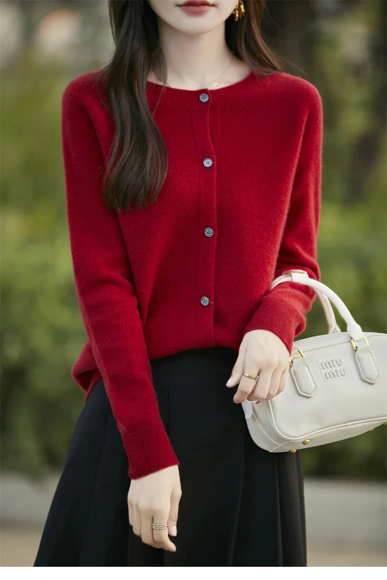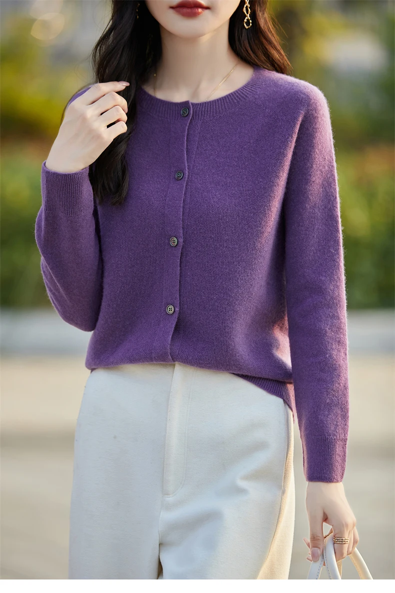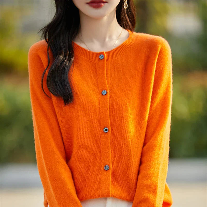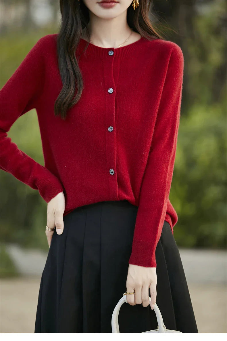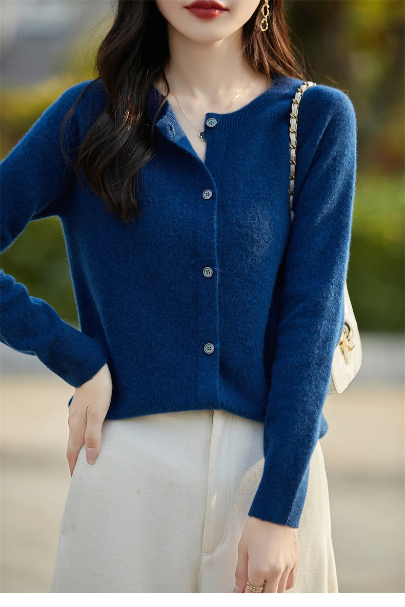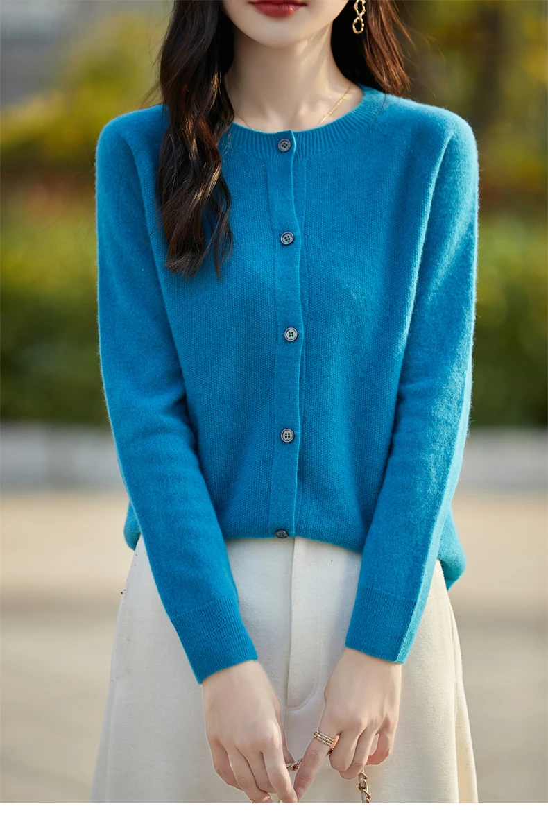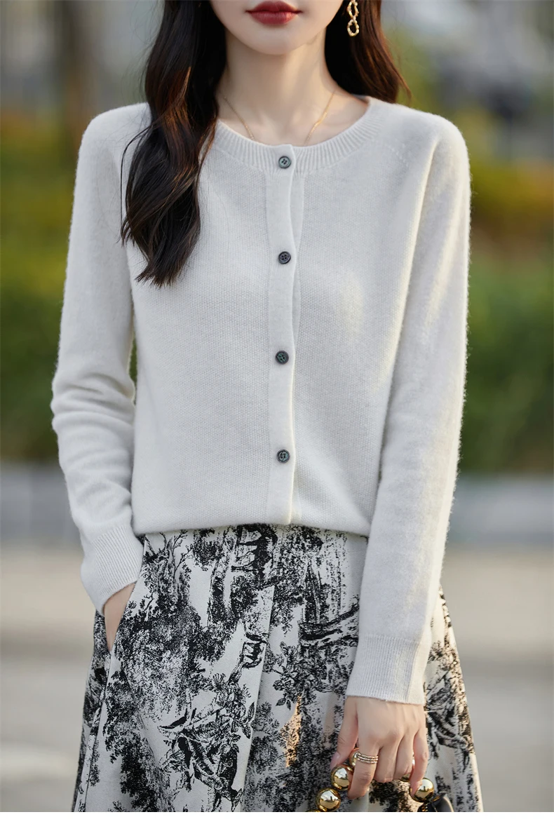 Soft Wool Cashmere Blend Knitted Round Neck Cardigan