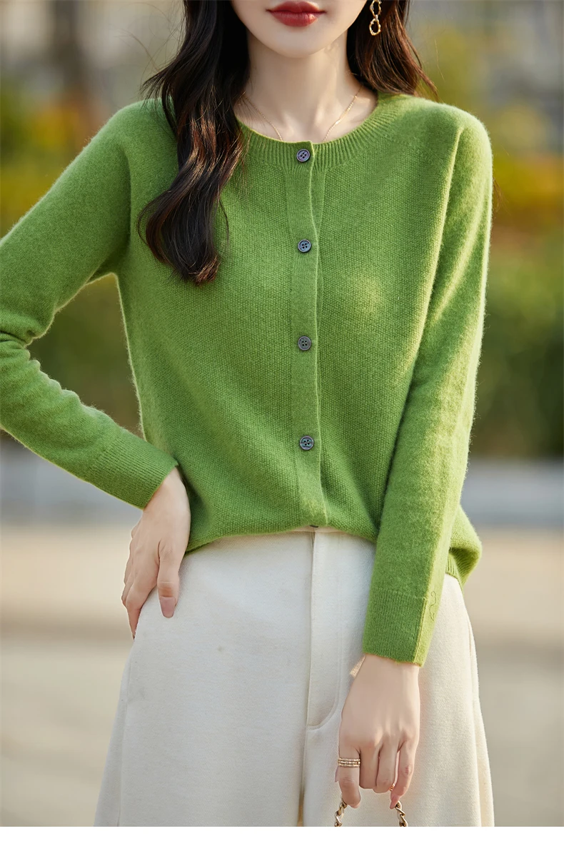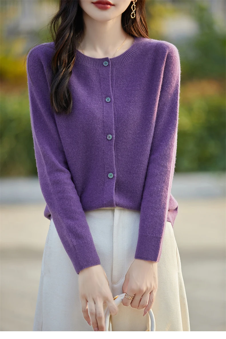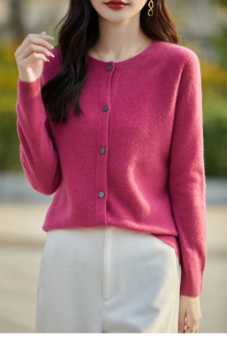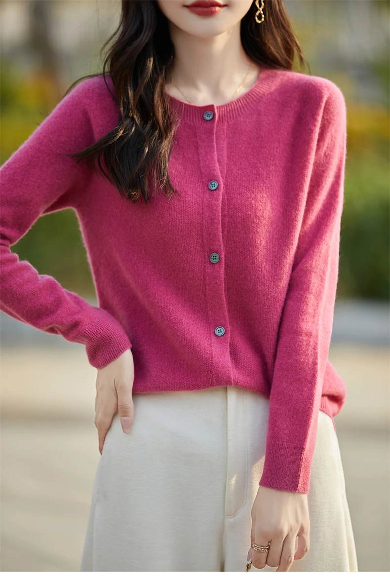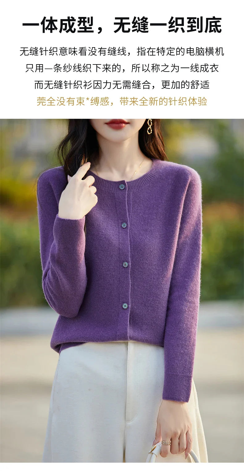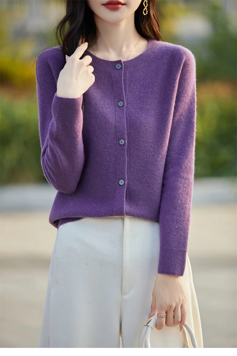 Soft Wool Cashmere Blend Knitted Round Neck Cardigan