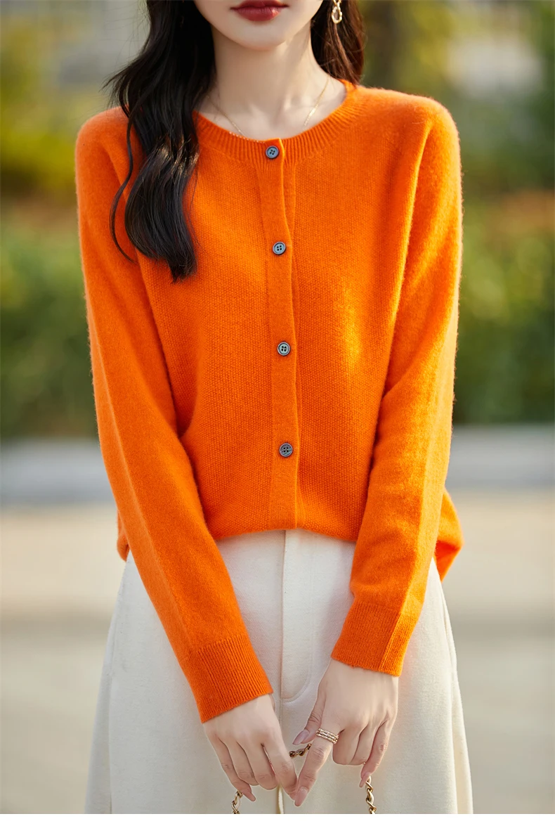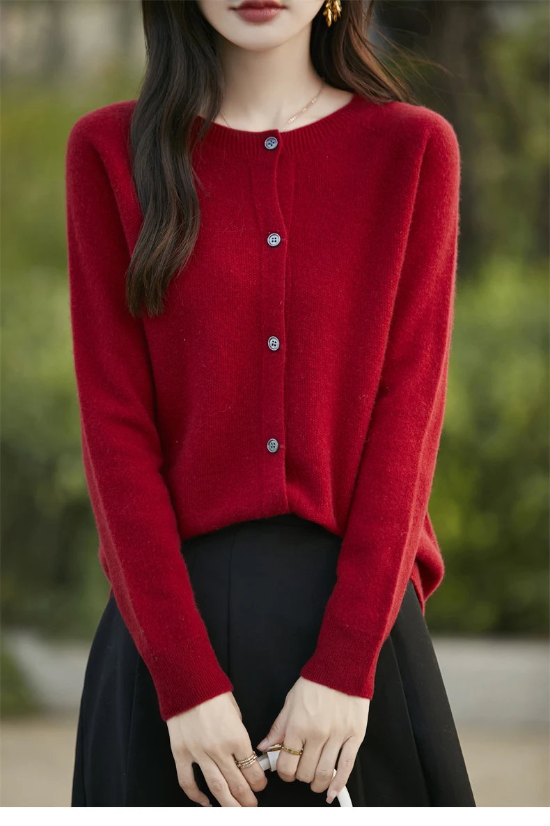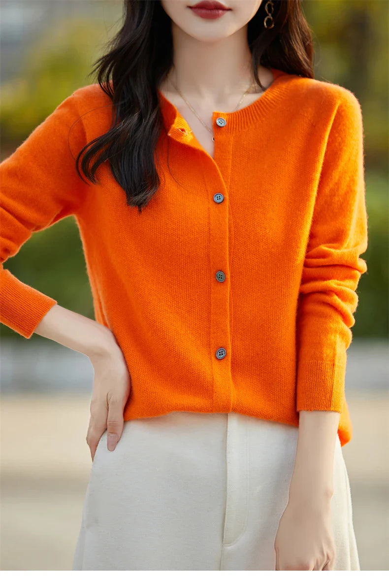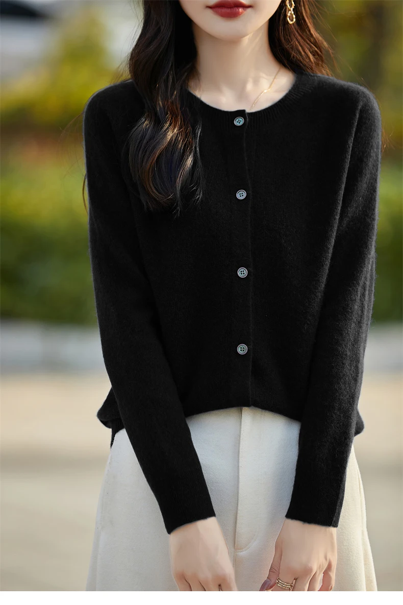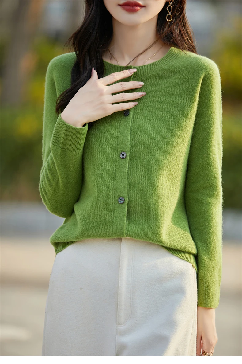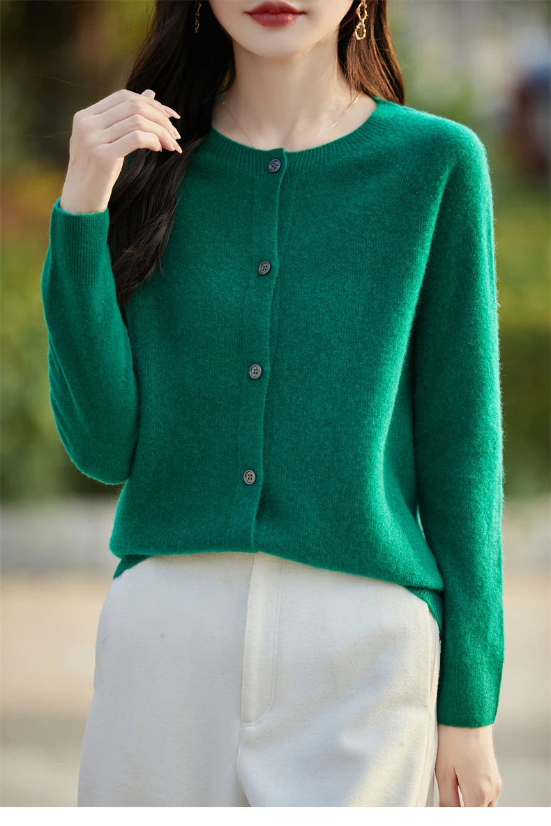 Soft Wool Cashmere Blend Knitted Round Neck Cardigan
