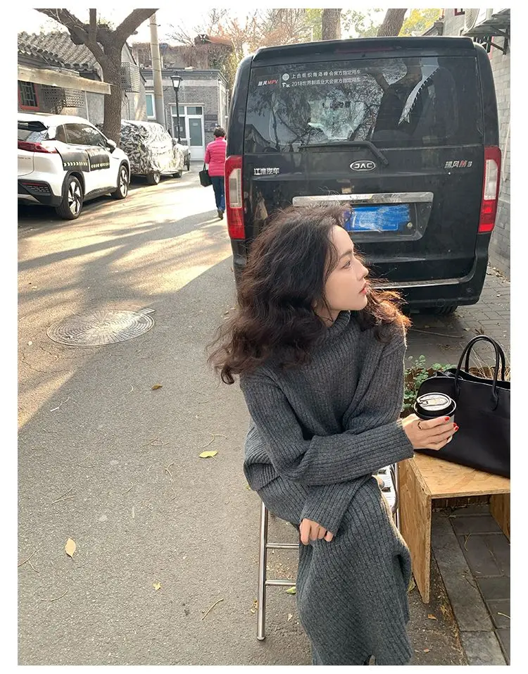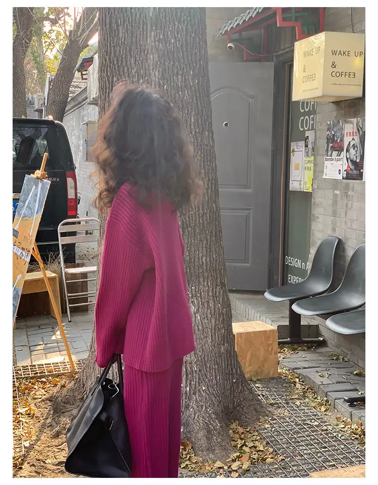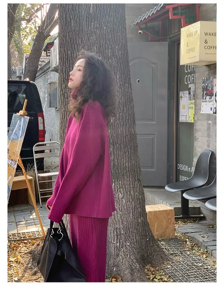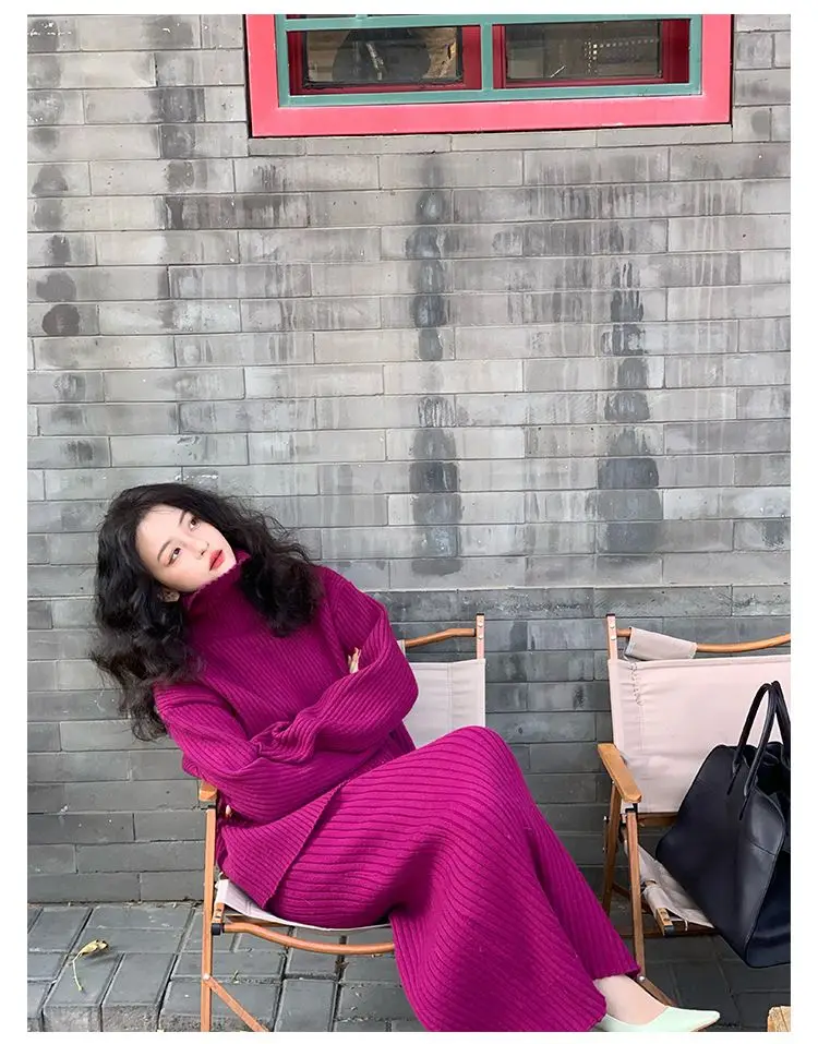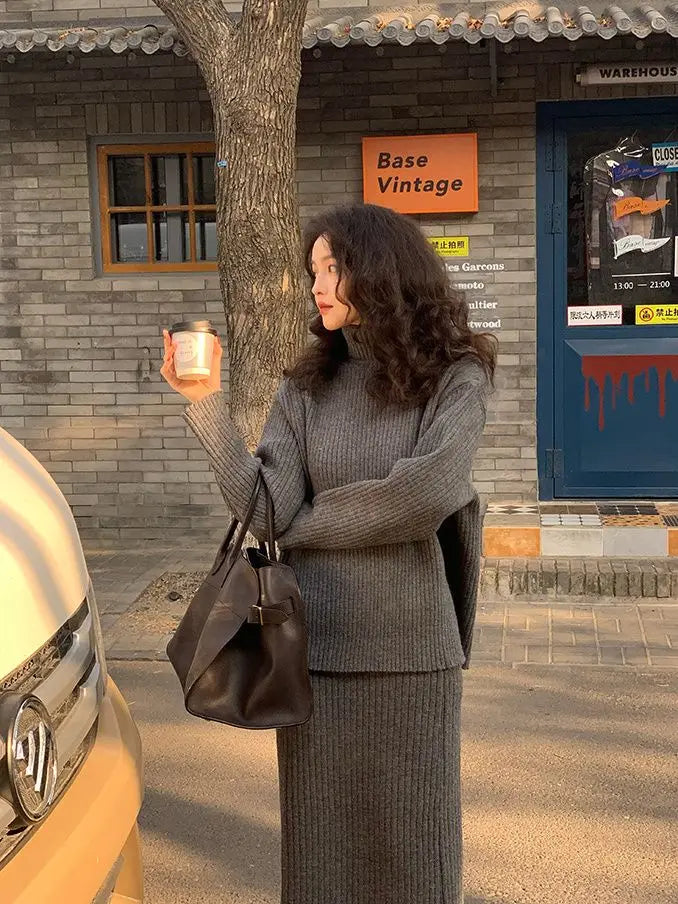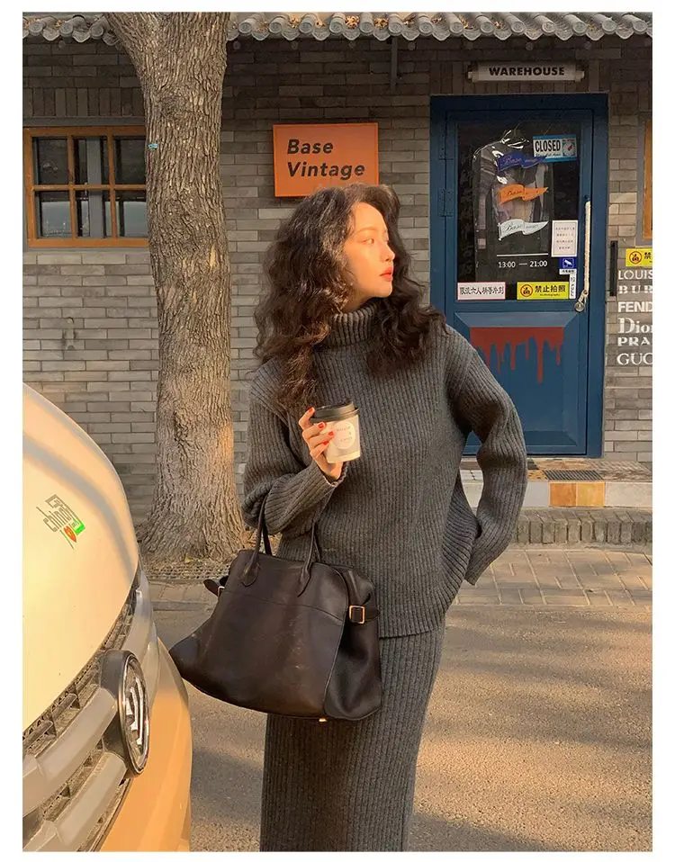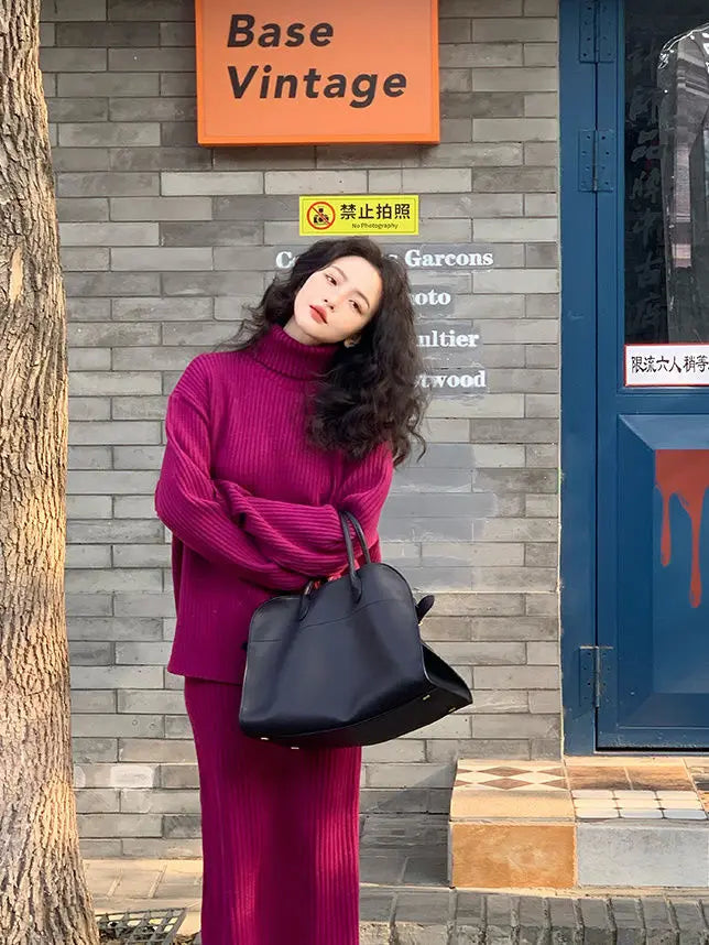 French Trendy Retro Two-piece Set with High Neck Sweater Knitted Top