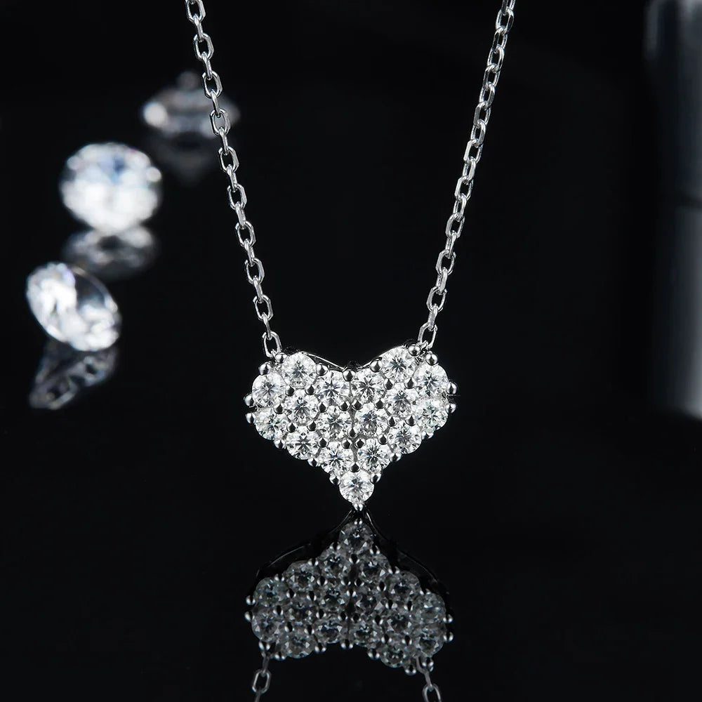 Fall in love with this exquisite Sterling Silver Heart Shaped Pendant & Earring Moissanite Lab Diamonds Set. Crafted with quality sterling silver and shimmering lab diamonds. this set is perfect for adding a touch of elegance and romance to any outfit. A stunning addition to any jewelry collection.