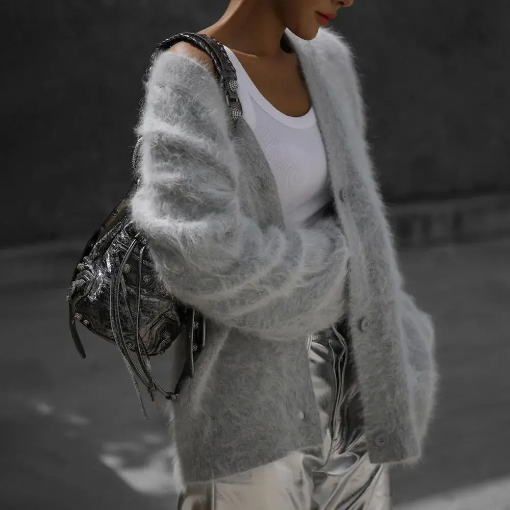 Get ready to cozy up in London's Casual V-Neck Oversized Knit Long Sleeve Cardigans!