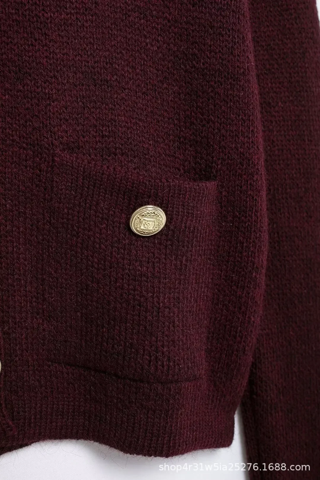 Knitted Jacket Cardigan with Gold Buckle Decoration
