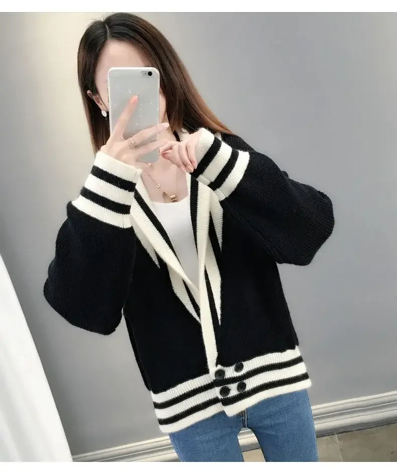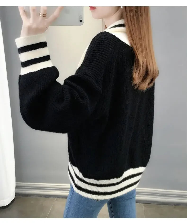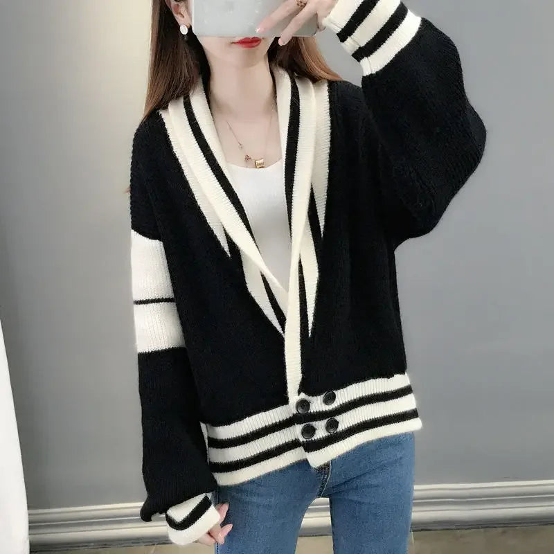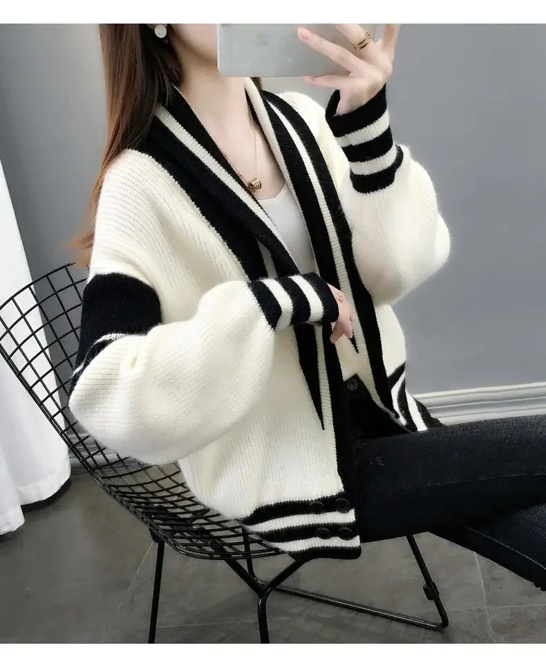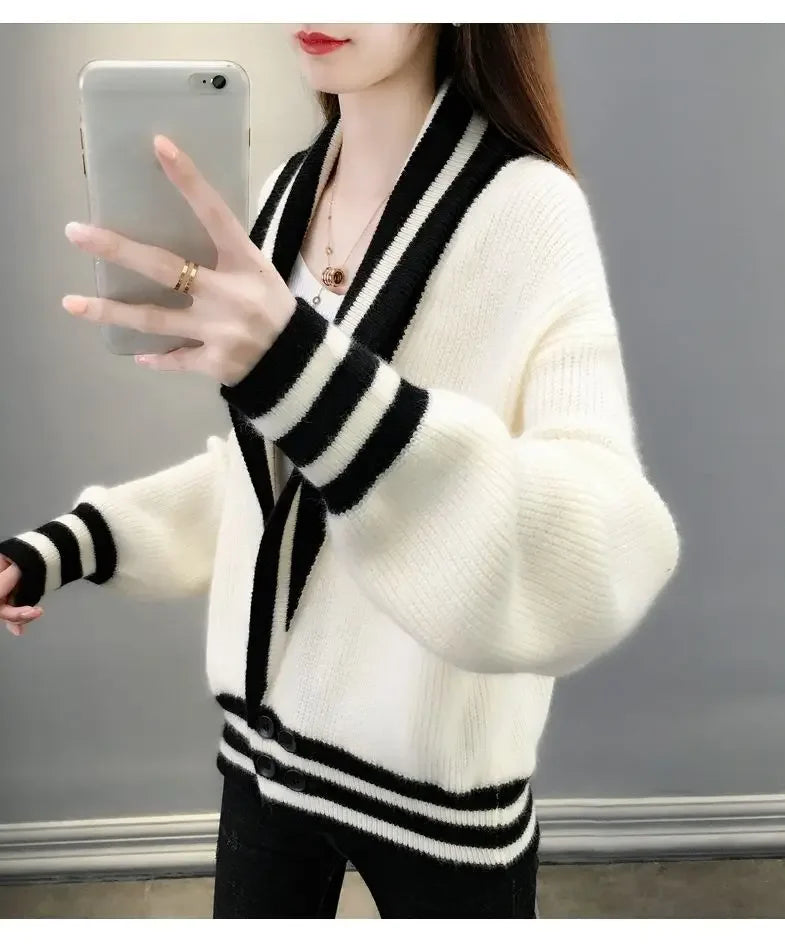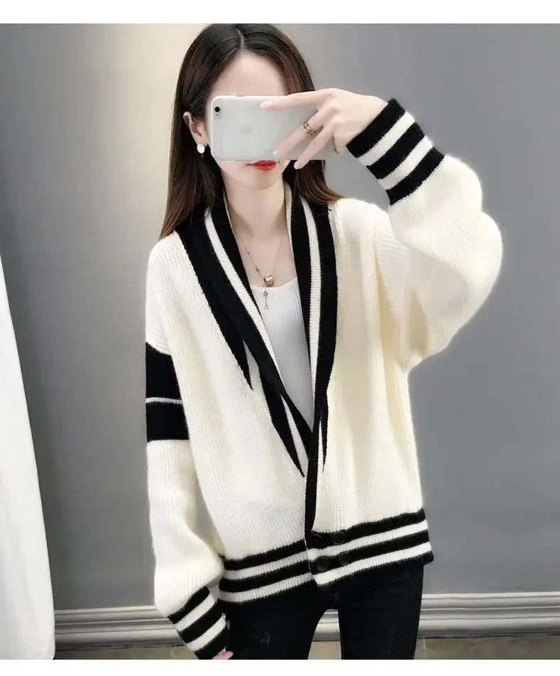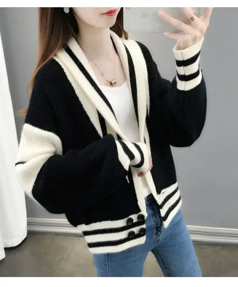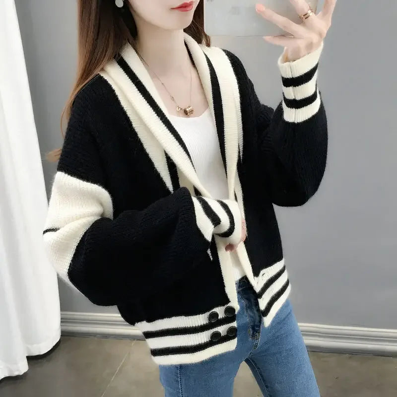 Striped Knitted Cardigan Coat Long Sleeve Sweater Jackets
