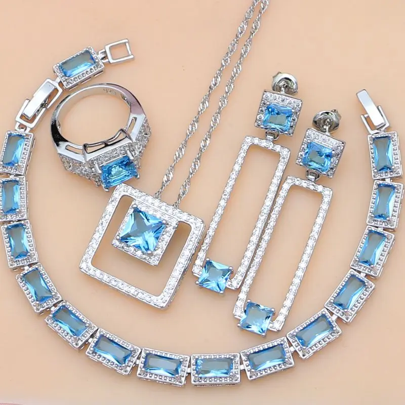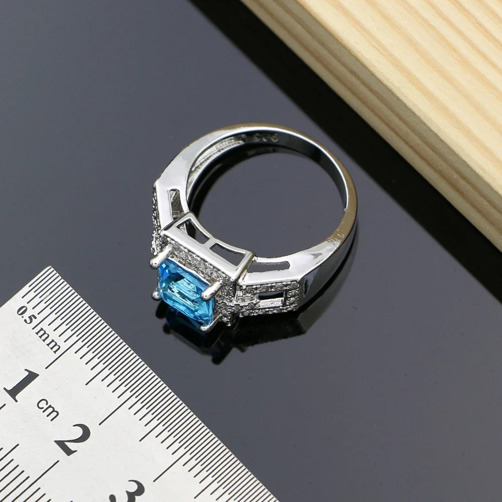 Blue Sapphire Jewelry White Topaz 925 Sterling Silver Jewelry Sets For Women Ea