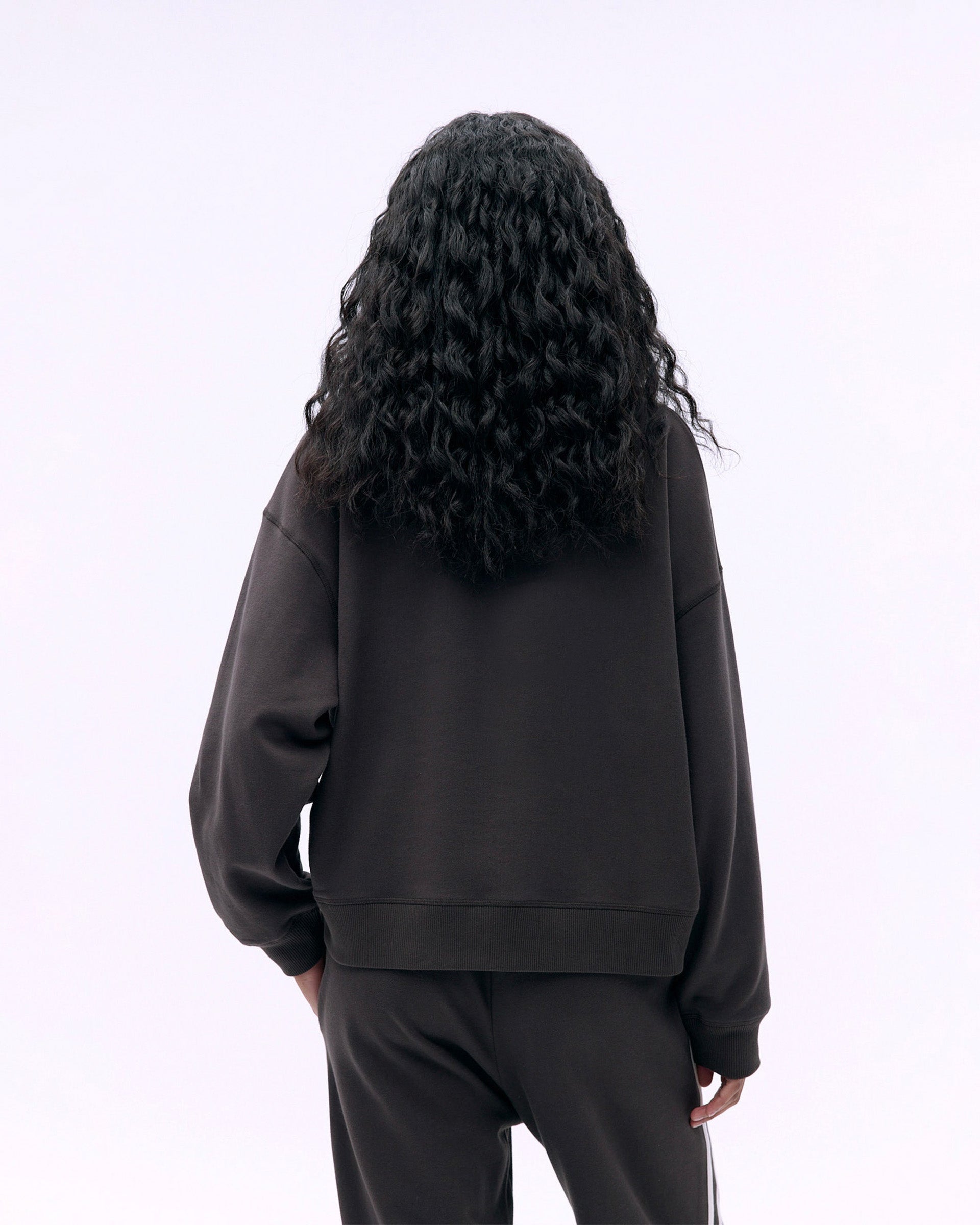 Our new Loose Fit Sweatshirt is crafted from a lightweight. fleece-back organic cotton. Designed with a relaxed. boxy fit and dropped shoulders. it offers an effortlessly loose silhouette. Pair it with matching sweatpants or leggings for a laid-back. casual look.
