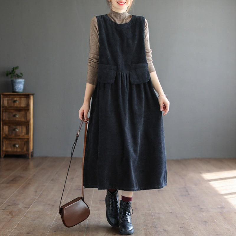 Artistic Corduroy Mid-length Sleeveless Vest Dress Dress
