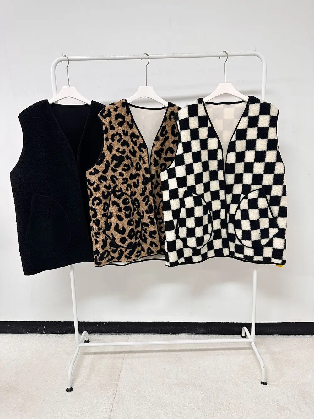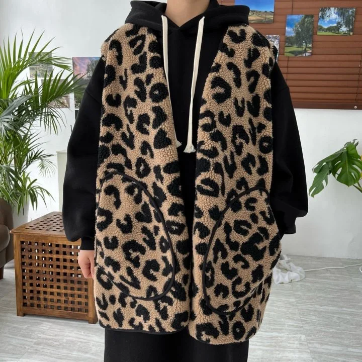 Leopard Print Lambswool Sleeveless Coat Vests Coats