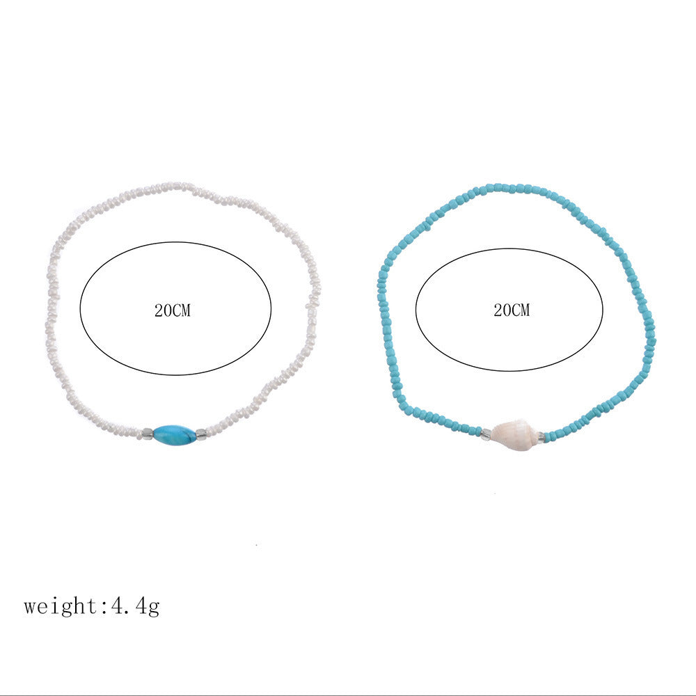 Beach Boho Style Handmade Beaded Turquoise Pearl Seashell Anklet Set - 2 Anklets Included.