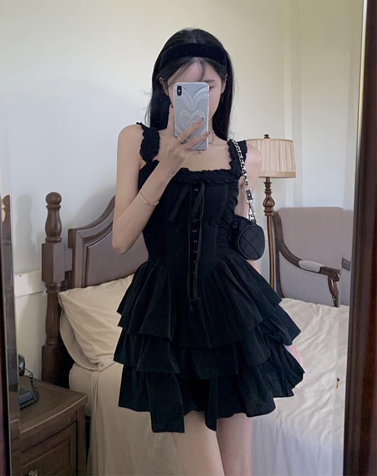 Inspired by the iconic Hepburn. this sling dress exudes elegance and sophistication. The perfect addition to your wardrobe. it's sure to turn heads and make you feel like a true fashion icon. Step out in confidence and effortless glamour with our Cake Black Dress. Whether you're attending a special occasion or simply seeking to elevate your everyday style. this dress is the epitome of chic. Made from high-quality polyester fiber. it offers comfort without compromising on style.