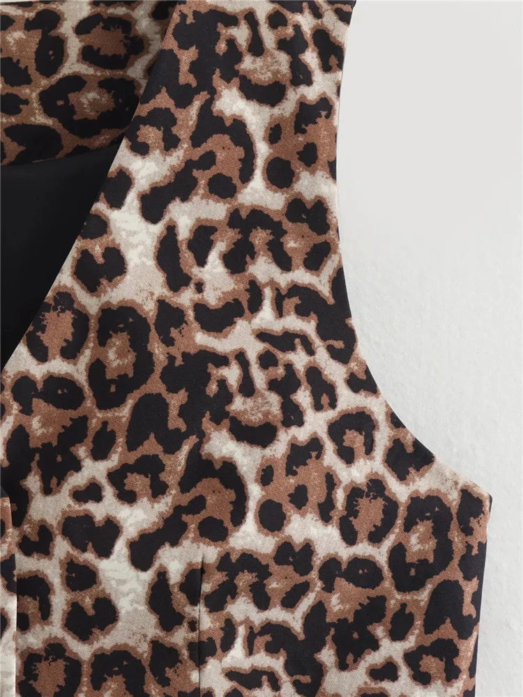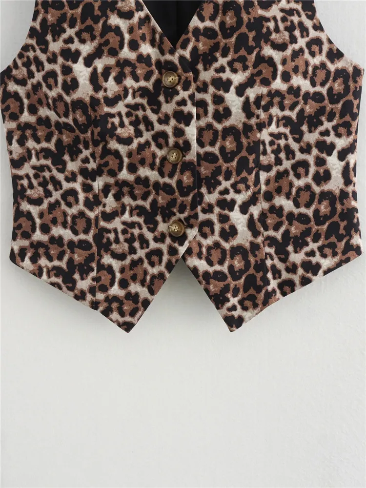 Chic Vintage Leopard Print Sleeveless V-Neck Slim Short Vest