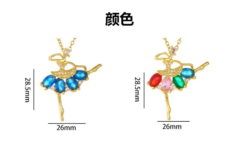 Embrace the beauty and grace of the Colorful Zircon Ballerina Girl Pendant Necklace. Adorned with vibrant zircon stones. this necklace exudes elegance and charm. Perfect for any occasion. it adds a touch of femininity and sophistication to your ensemble. Elevate your style and make a statement with this stunning necklace.