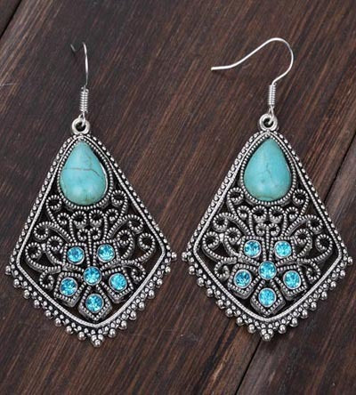Genuine Turquois Vintage Boho Silver Drop Hook Earrings.