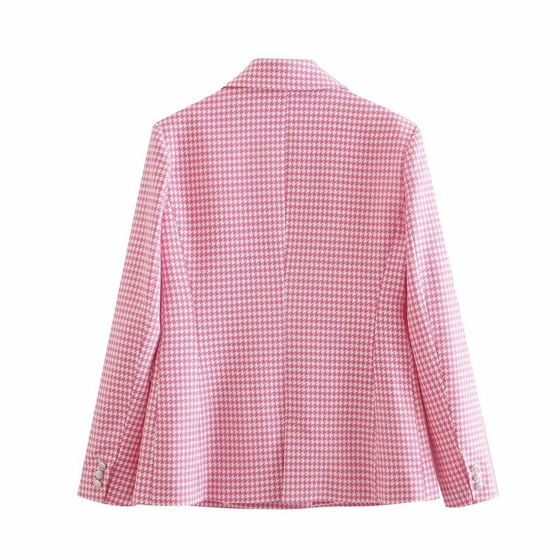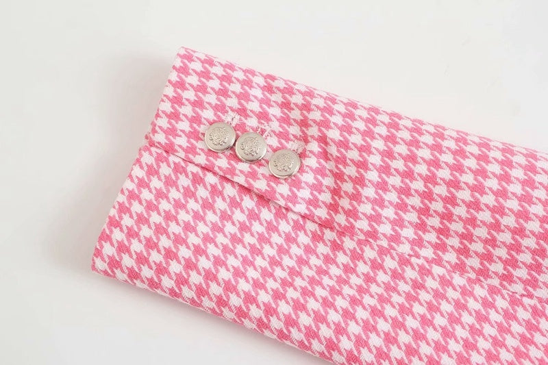 Take your look from drab to fab with the All The Feels Blazer. Stride into every activity with confidence in this blazer that has a classic houndstooth pattern. It showcases a collared neck with notched lapels. long sleeves and a double-breasted bodice that boasts flap pockets. It is a must-have piece that will easily take you from the office to weekend brunch. Don't wait and get yours before it's gone!