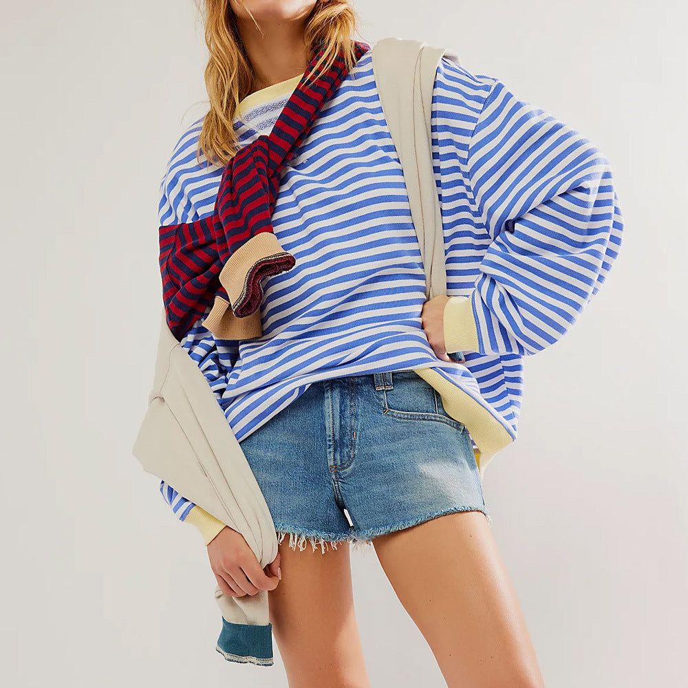 This top features a vibrant multicolor striped design that adds a pop of color to any outfit. Its loose fit provides both comfort and style. making it the perfect addition to your wardrobe. Stand out and make a statement with this must-have fashion piece!