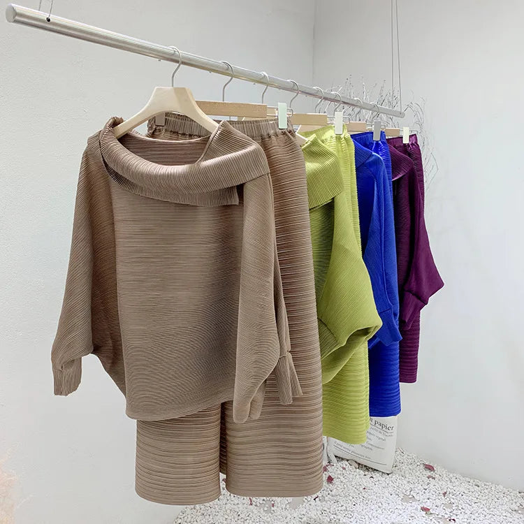 Perfected Charm Batwing Sleeve Top and Wide Leg Trousers Matching Set