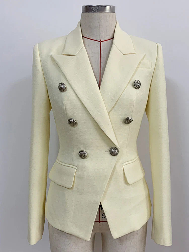 Classic Fashion Jacket with Silver Lion Buttons & Double Breasted Slim Fit