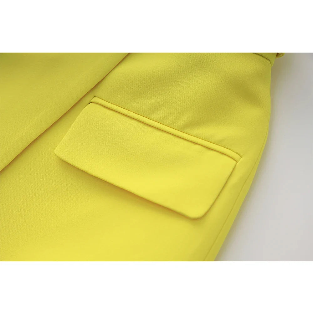 Our Style Struck Two-Piece Set is the chicest choice on the market. It displays a bright yellow shade for the perfect balance between playful and sophisticated. featuring a double-breasted blazer with notched lapels. long sleeves and flap pockets. The matching. faux-wrap mini skirt falls from a belted high waist with a B logo embellishment into a hip-hugging design with back zipper closure. Get your hands on this cute set now!