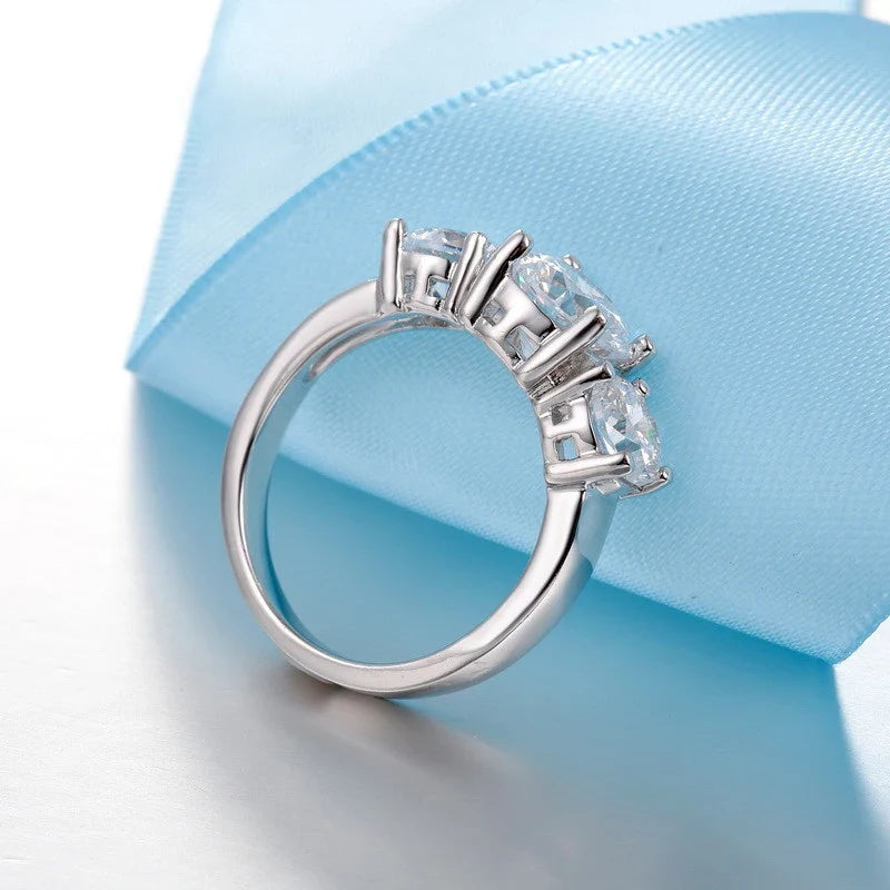 925 Sterling Silver 3 CZ Stone Prong Setting Band Ring