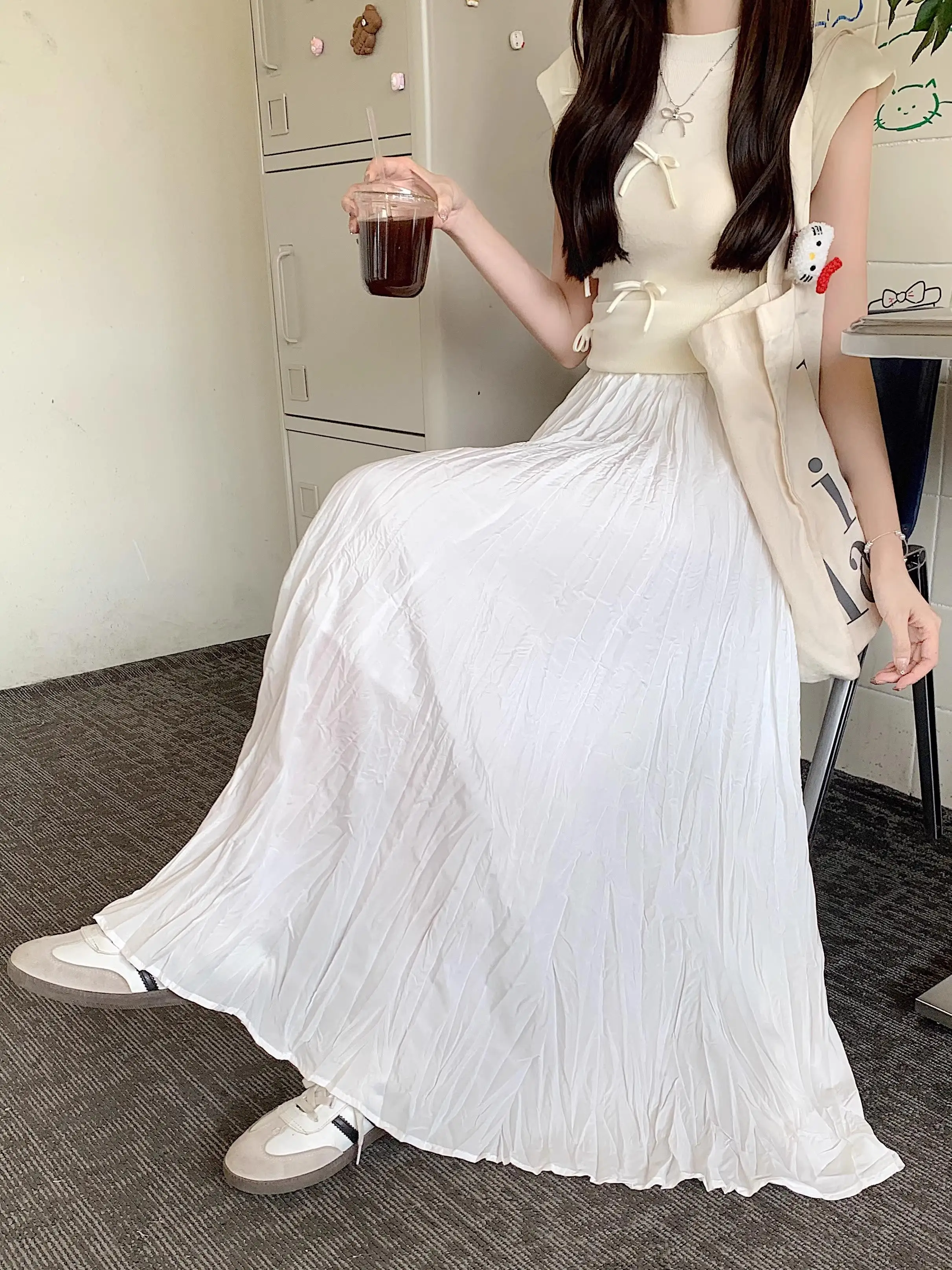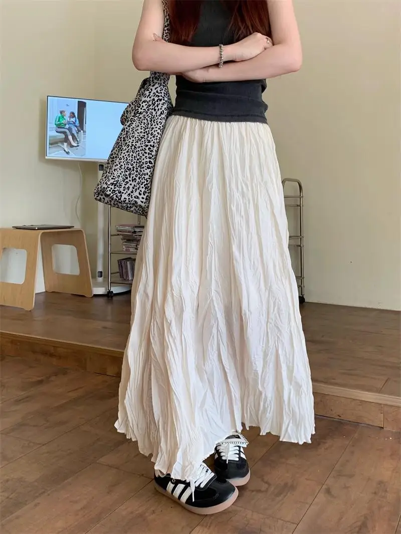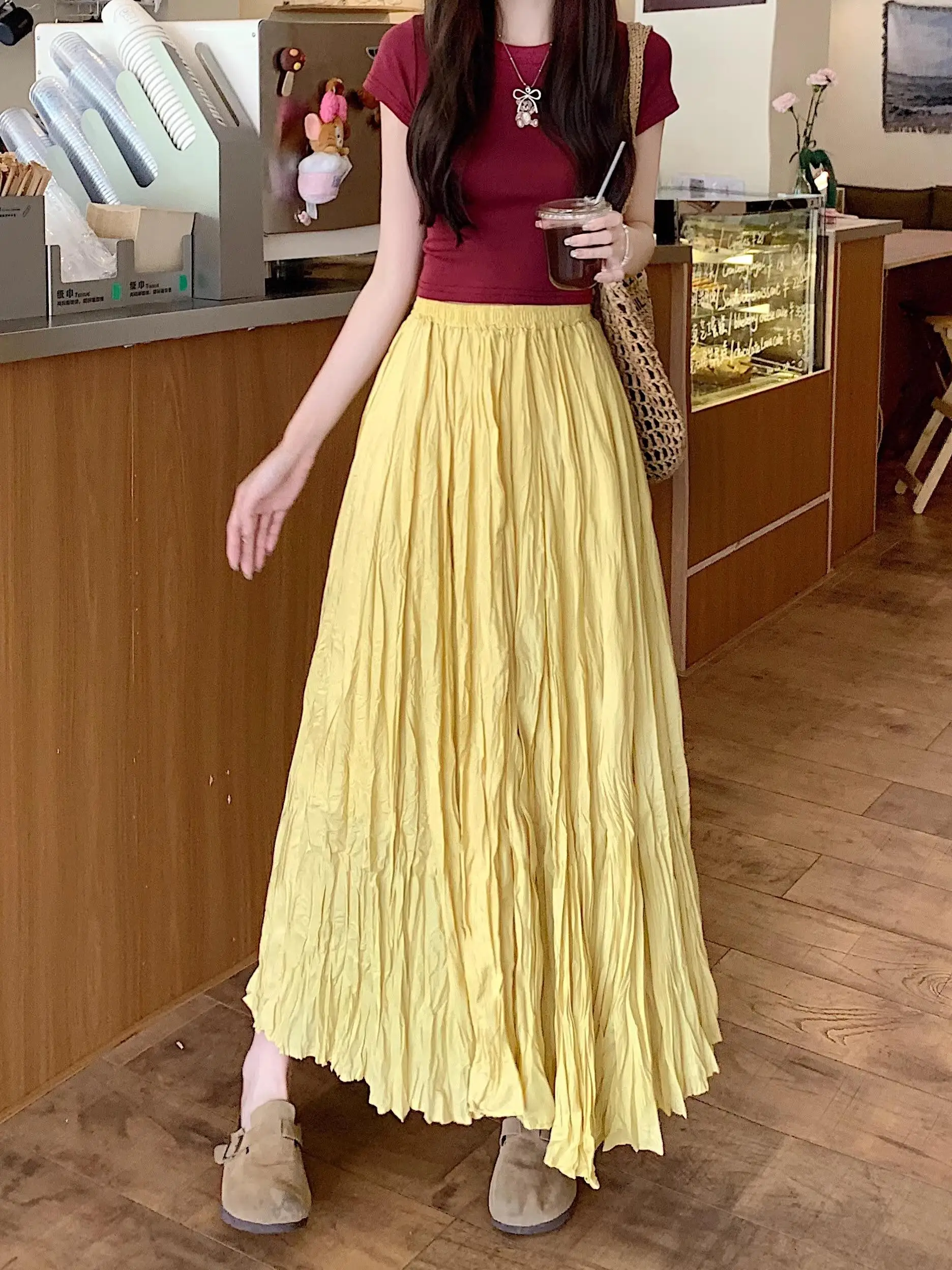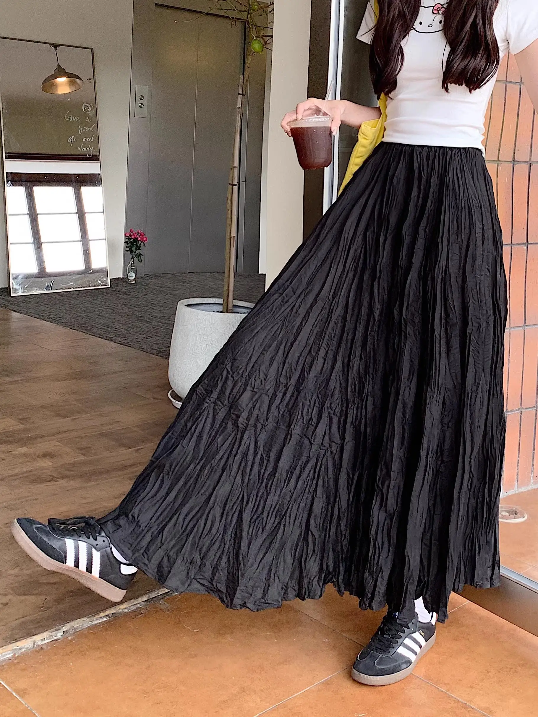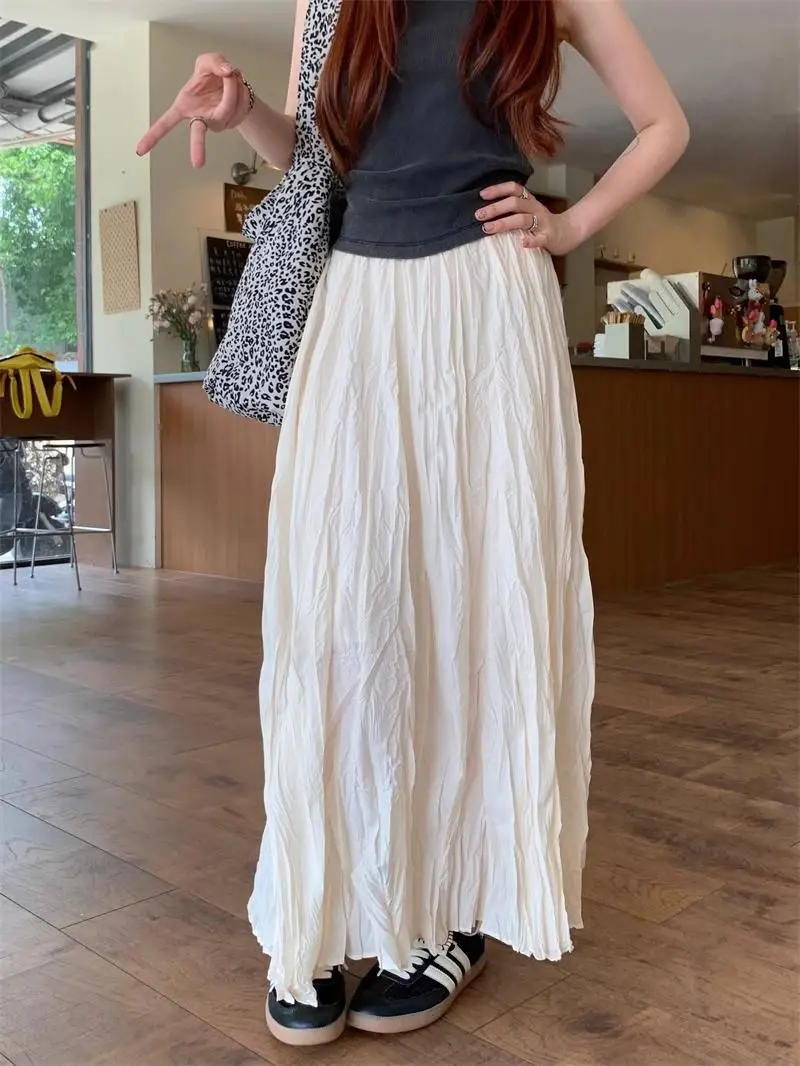 Light Loose Boho Fashion Pleated High Waist Skirt - One Size