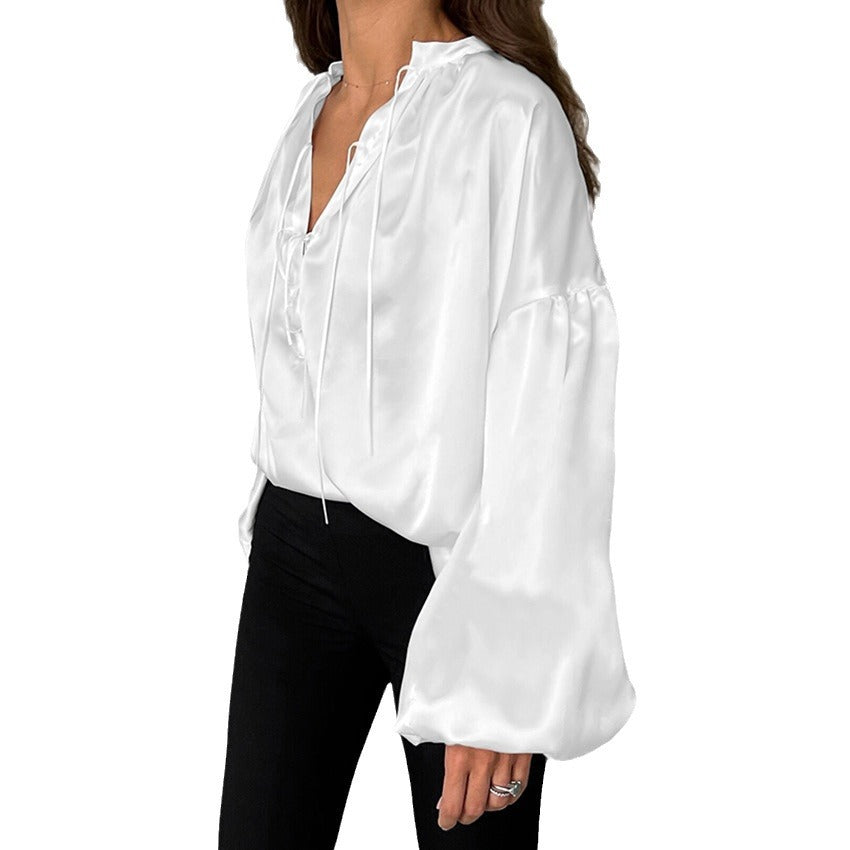 Luxe Satin Stand Collar Loose Sleeves Shirt
