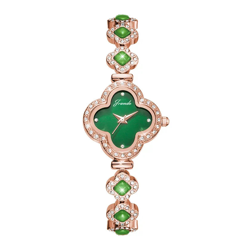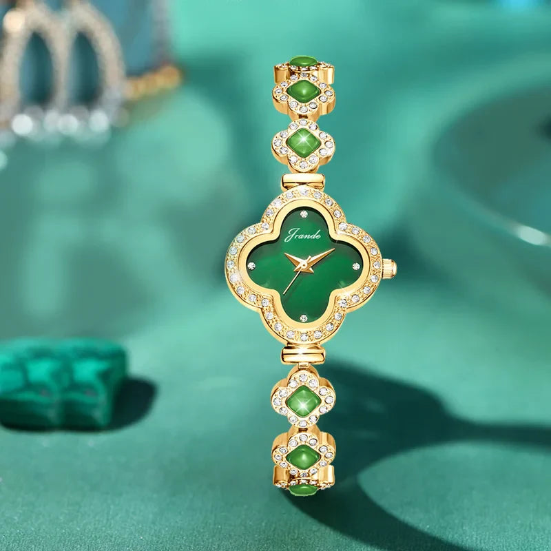 Lucky 4 Leaf Clover Green Rhinestone Watch