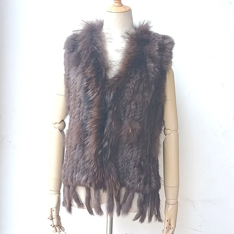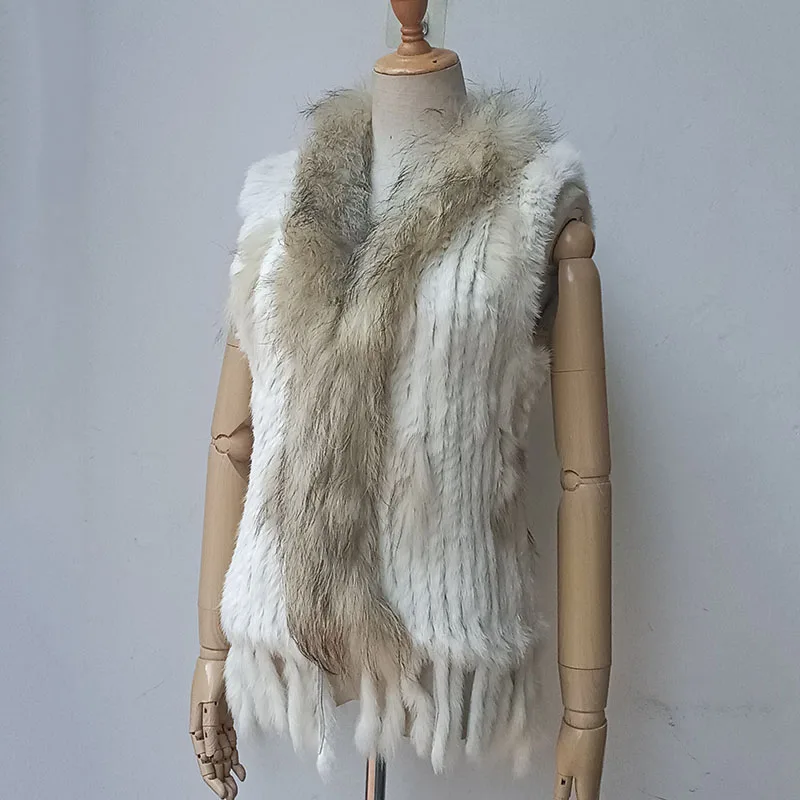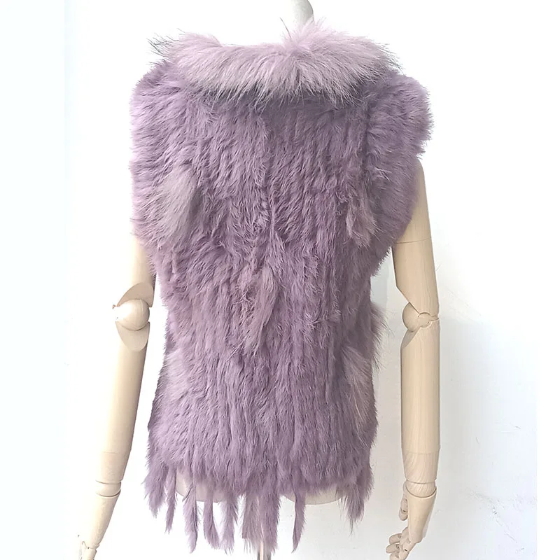 Stay warm in style with this Warm Cozy Rabbit Fur Knitted Vest!