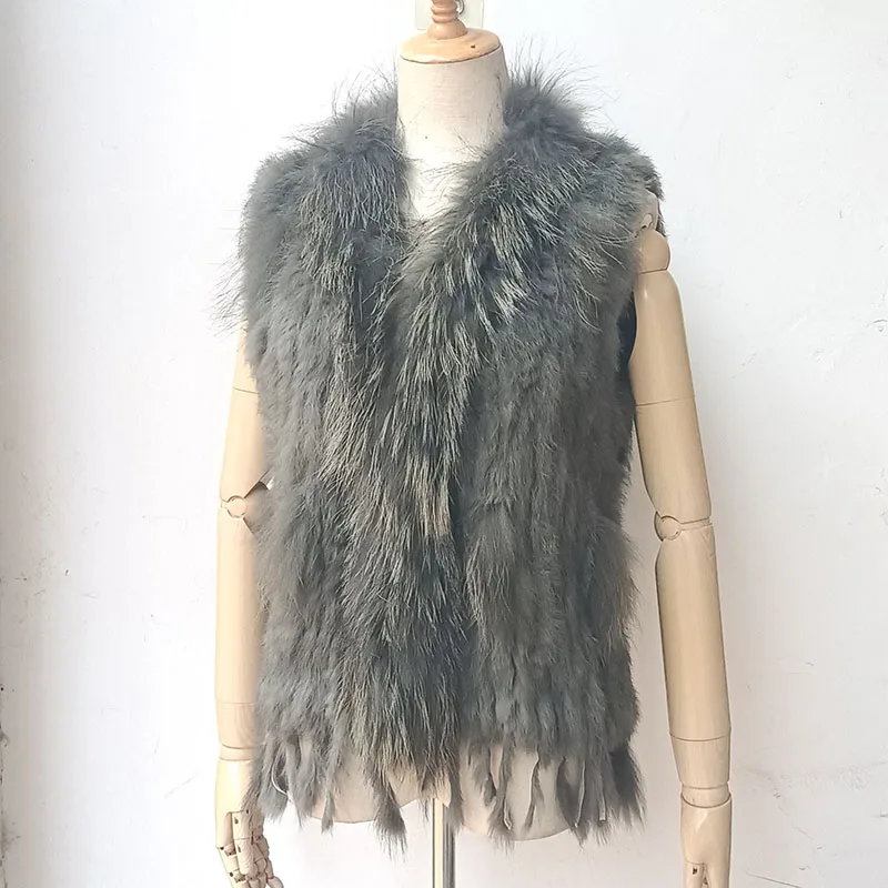 - Warm Sleeveless Genuine Rabbit Fur Knitted Vest