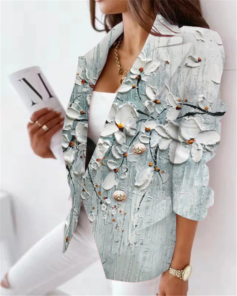 Keep your fashion game strong with the Miss Chic Blazer. It has a classic double-breasted silhouette with notched lapels. long-length sleeves and a flattering fit embellished with lion buttons glistening in gold. The gorgeous flowers bloom all over to lend an ultra-feminine flair to an otherwise simple style. Get yours now and layer over your favorite tee and slim-fit jeans to create a super modern look.