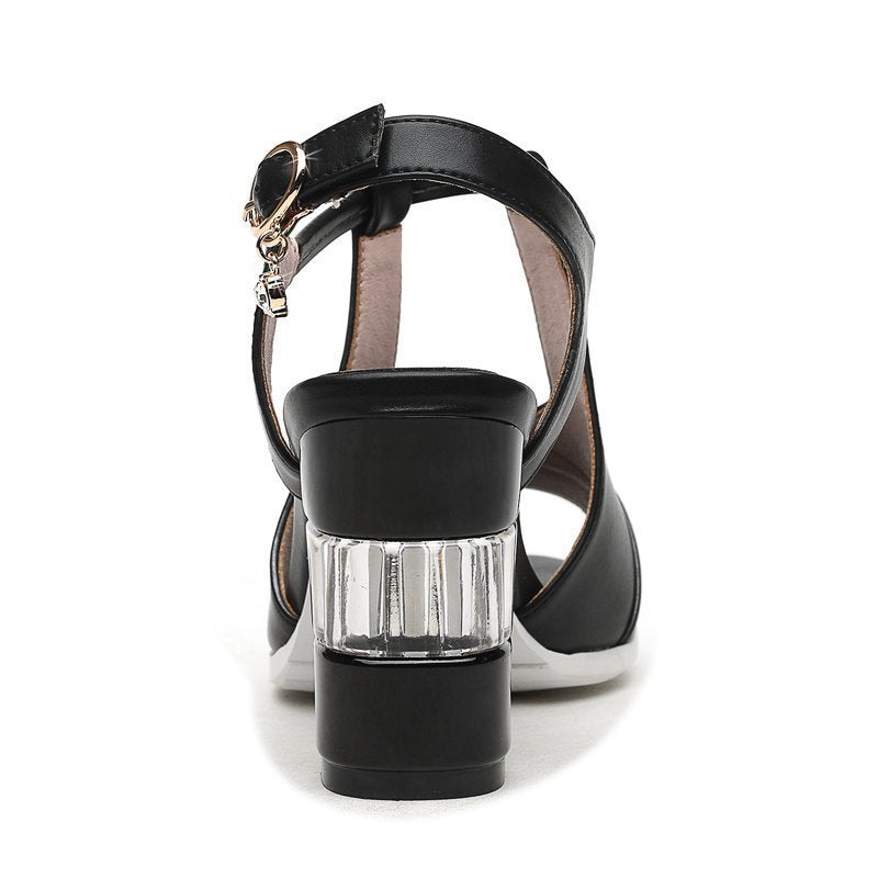 Step up your shoe game with these Cross Strap Open Toe Thick High Heels! These heels not only provide a stylish and trendy look. but also offer superior support and stability with their cross strap design. Show off your fashion forward style and walk with confidence in these thick high heels.