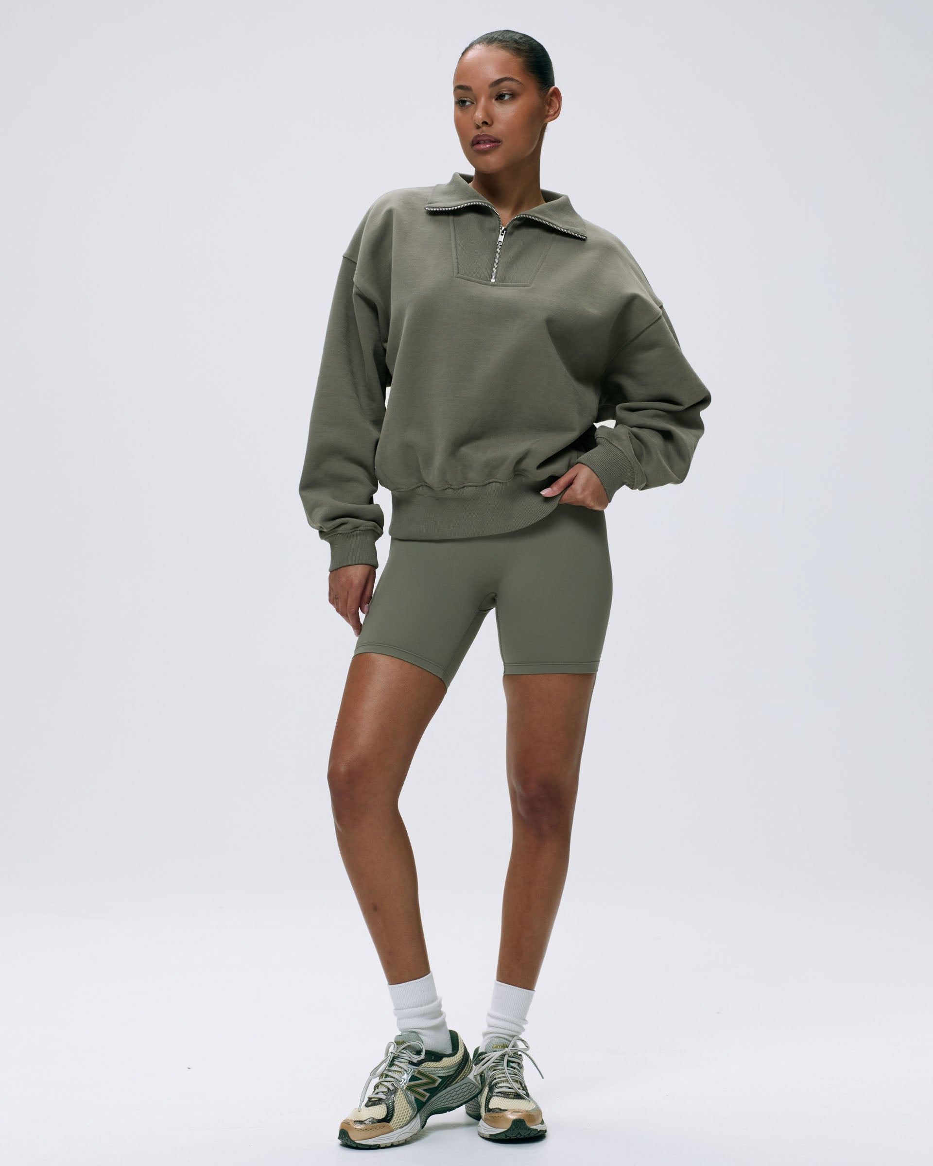 Relaxed Funnel Neck Zip Sweatshirt - Olive Green