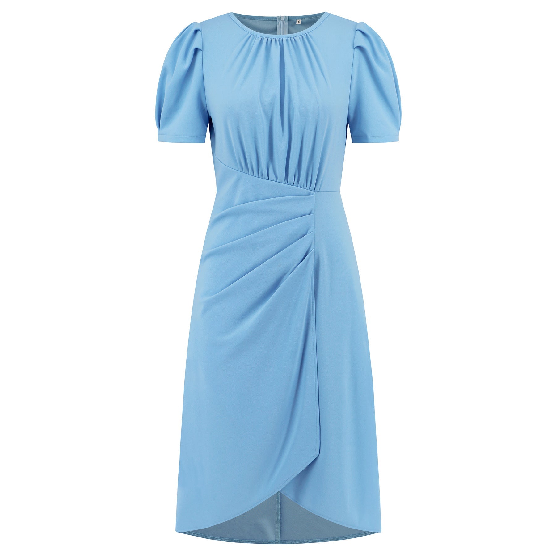 Introducing our Round Neck Puff Sleeve Slim Business Dress! Look stylish and professional with this dress that features a flattering round neck design and slimming puff sleeves. The round neck and puff sleeve design adds a touch of refinement. while the mid-waist silhouette accentuates your figure with grace. Perfect for the workplace or any formal occasion. our dress promises to make you stand out with style.