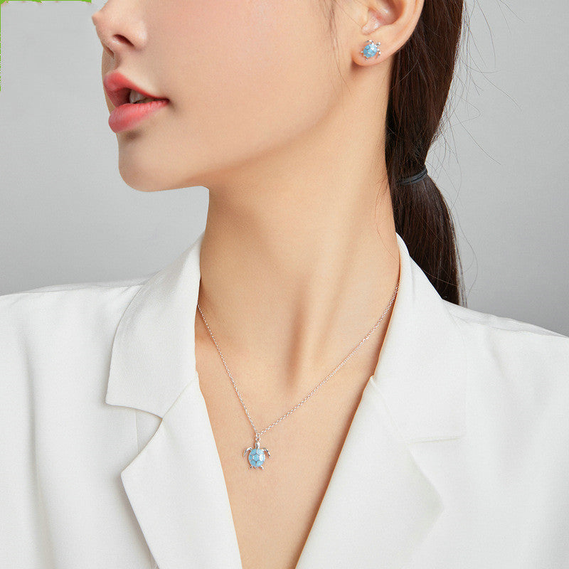 Inspire awe with this stunning 925 Silvery Blue Turtle Jewelry Set. Expertly crafted with intricate detail. this creative and cute animal turtle design will surely make a statement. Perfect for any outfit and occasion. accessorize with the earrings and necklace for a touch of elegance and charm.