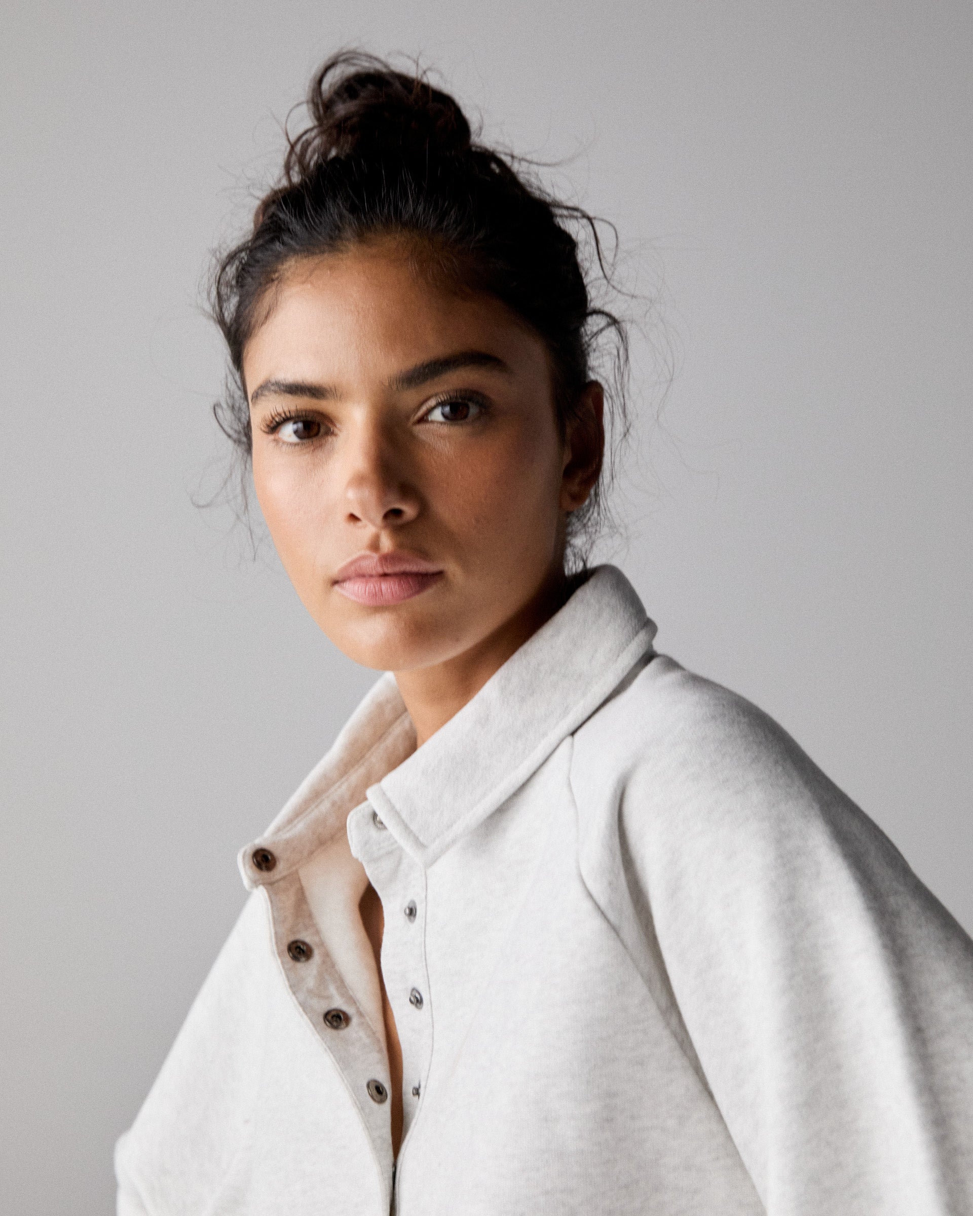 Slouchy Button Up Sweatshirt - Light Grey Melange