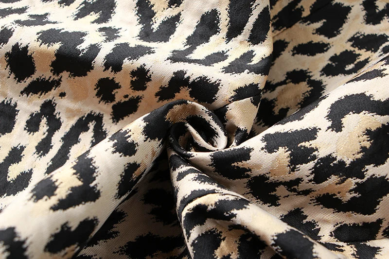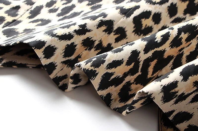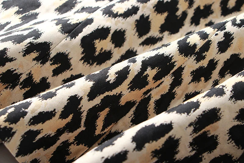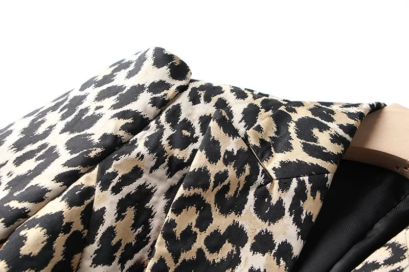 Why not work in style in this one? This blazer is one of a kind with its perfect fitting and cinched-in waist. The sharp lapeled front. along with the long sleeves and padded shoulders. gives it a high-fashion look. The leopard pattern is enhanced with the gold-colored buttons. which also give it a prominent look. Why wait? Elevate your style now!