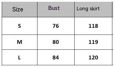 | Size | Length (in) | Bust (in) | Waist (in) | Hip (in) |
