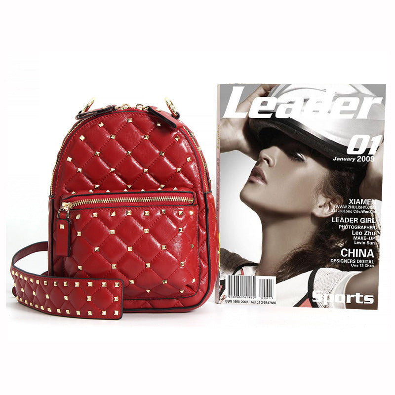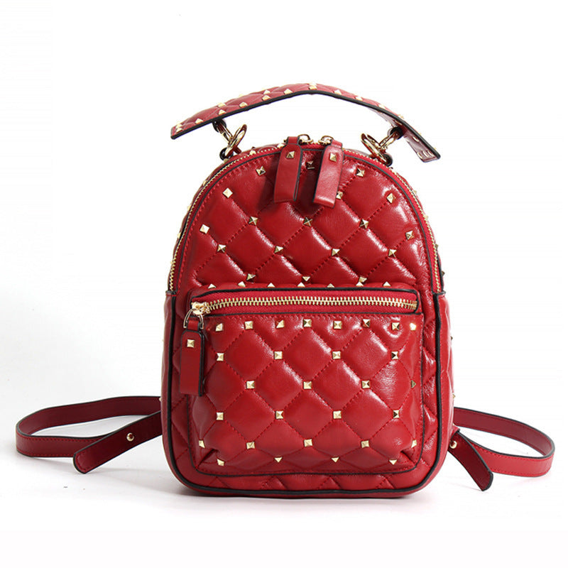 Small Top Grain Leather Rivet Sheepskin Designer Style Backpack