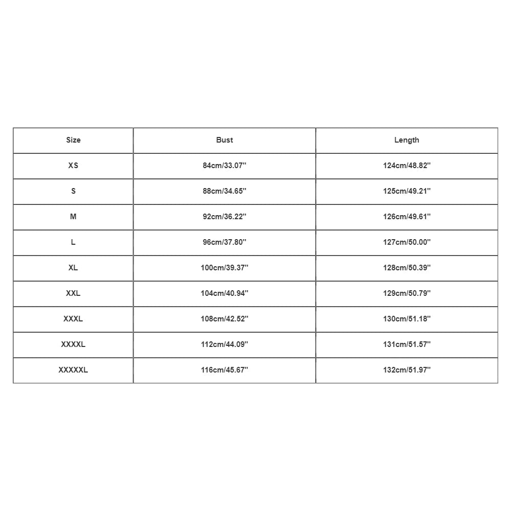 | Size:XL | Bust:100cm/39.37'' | Length:128cm/50.39'' |