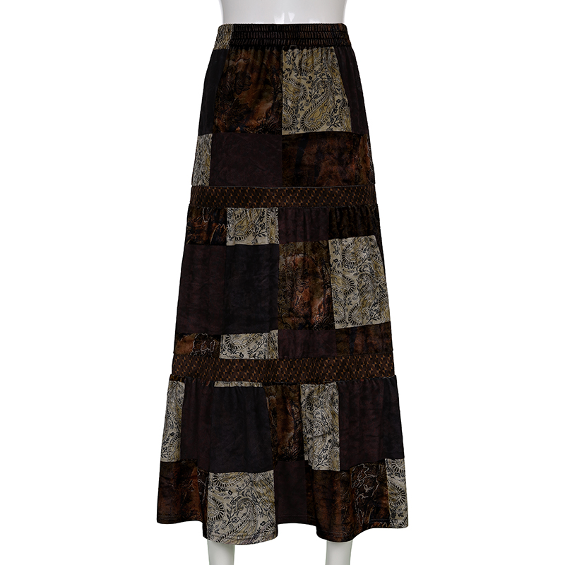 Made with a mix of cotton. polyester and spandex. this elegant ankle-length skirt features a beautiful flower print in brown. Perfect for any occasion. whether it's a party or the office. and suitable for all seasons - summer. autumn. winter. and spring