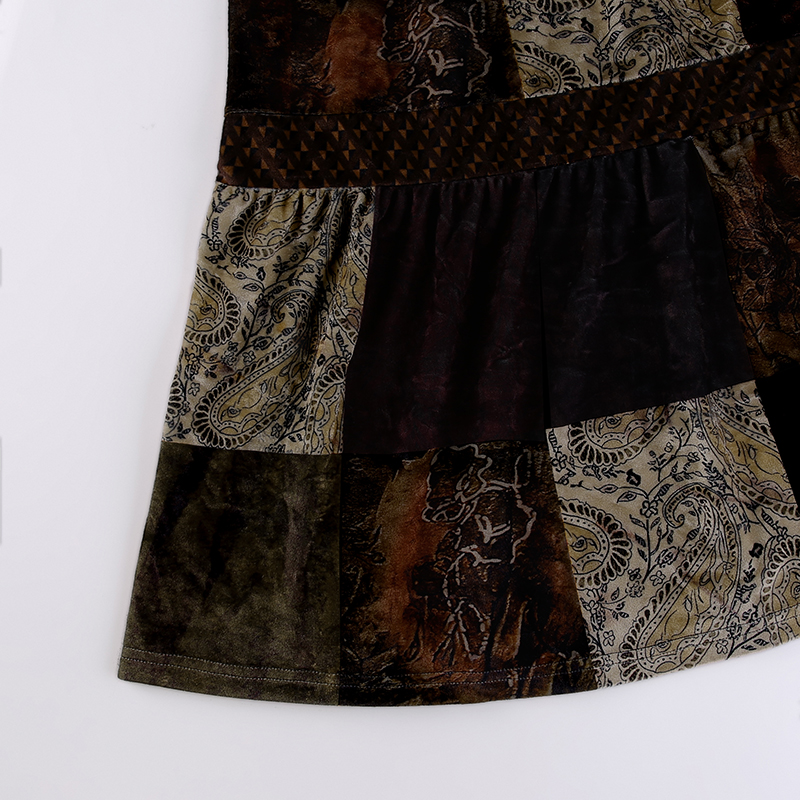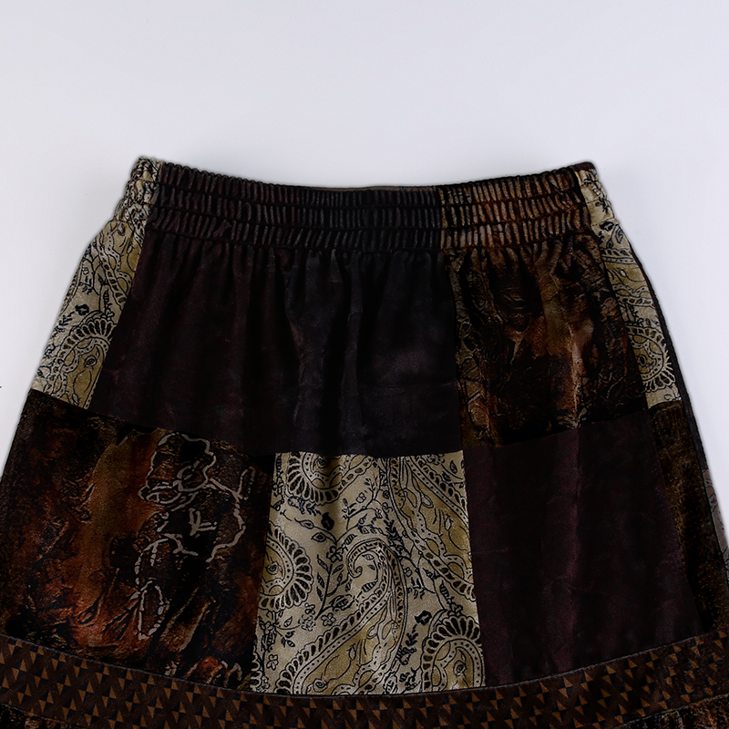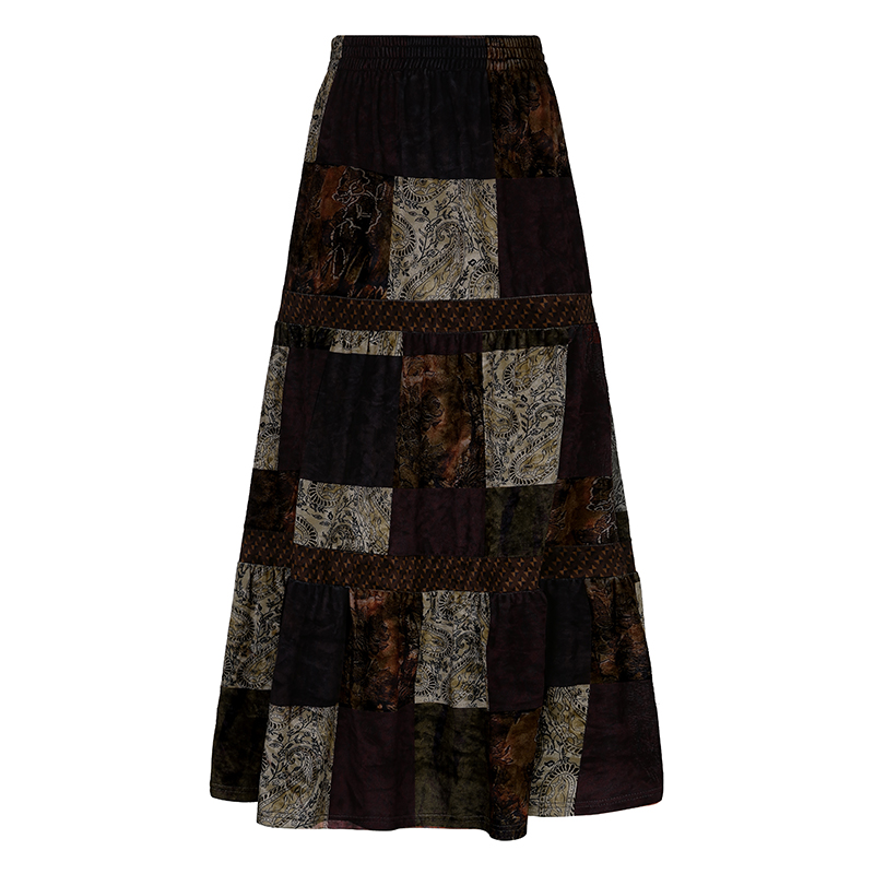 Boho Patchwork Brown Pleated Skirt - a playful. quirky and fun addition to your wardrobe!