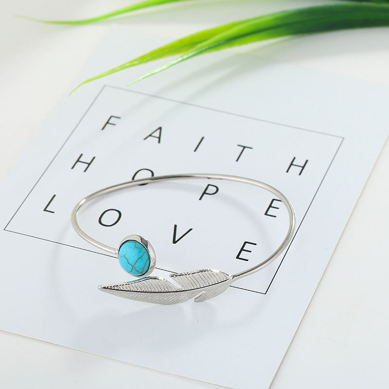 Retro Natural Stone & Feather Silver or Gold Adjustable Bracelet.